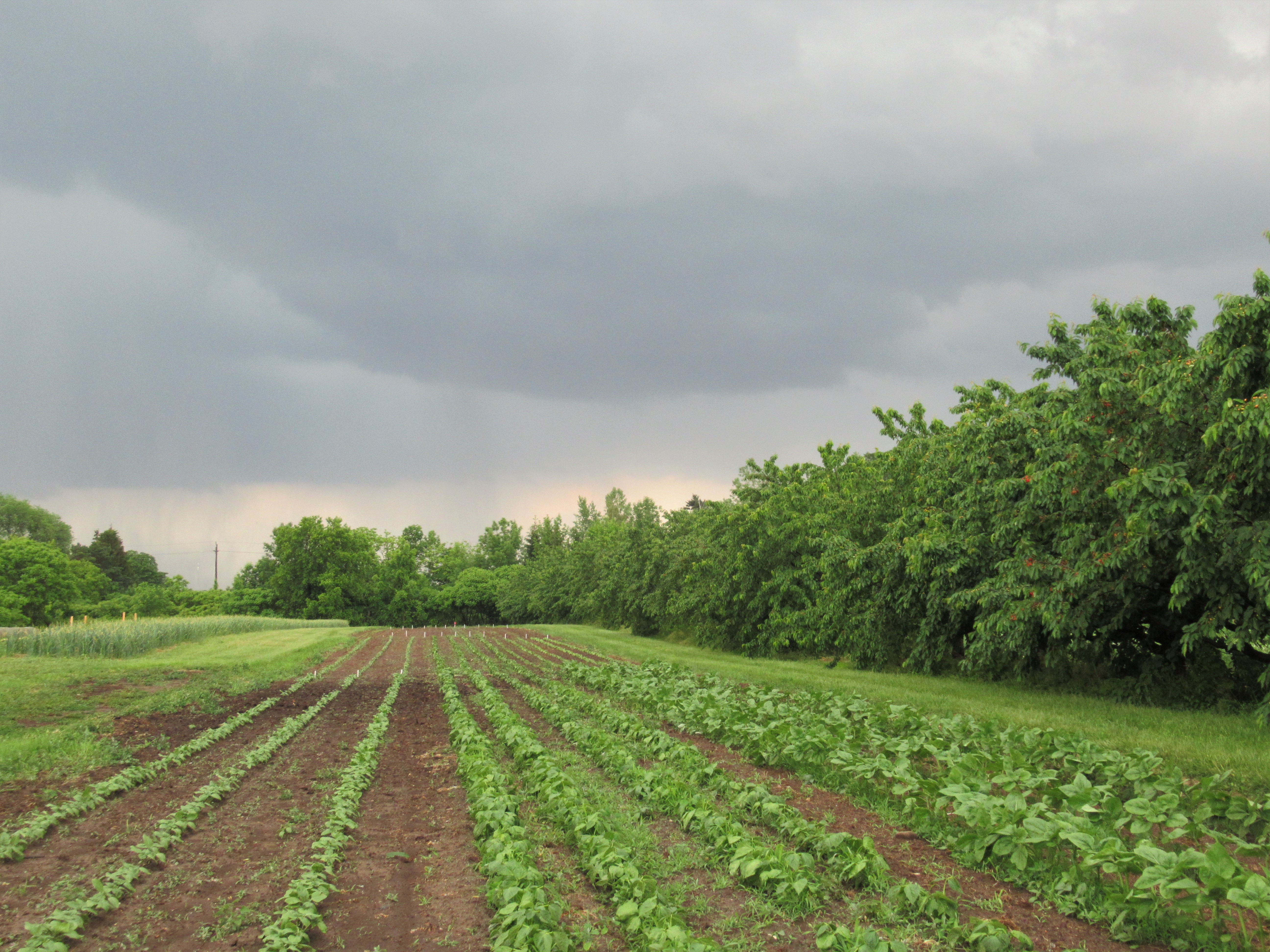 While a farmer’s preference is always a slow, steady rain, during the night (with clearing by morning so as to not interfere with the day’s work) with climate change we seem more likely to get severe storms, and so we learn to accept & adapt. Regardless, while the rain was welcomed the hail was not!