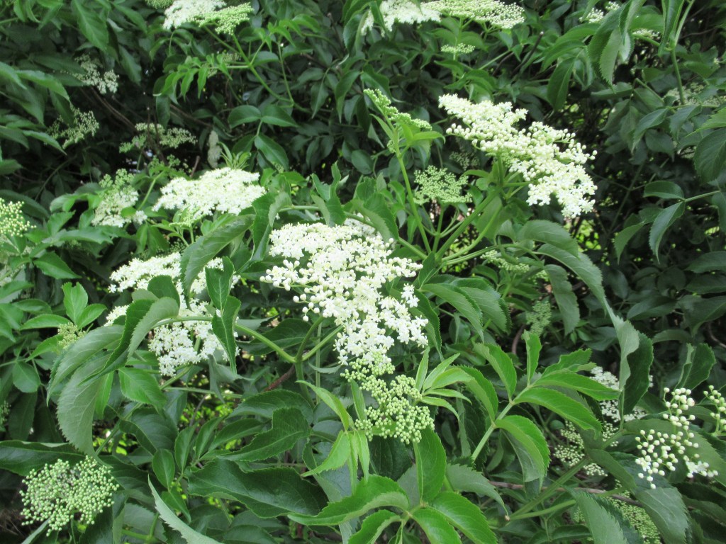 The elderberries are in bloom. We cut theses flowers to sell at market. They are used in drinks (elderflower cordial) or in baking.