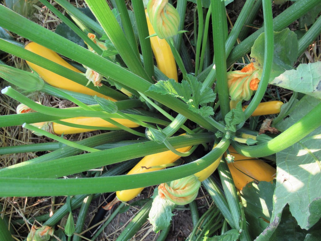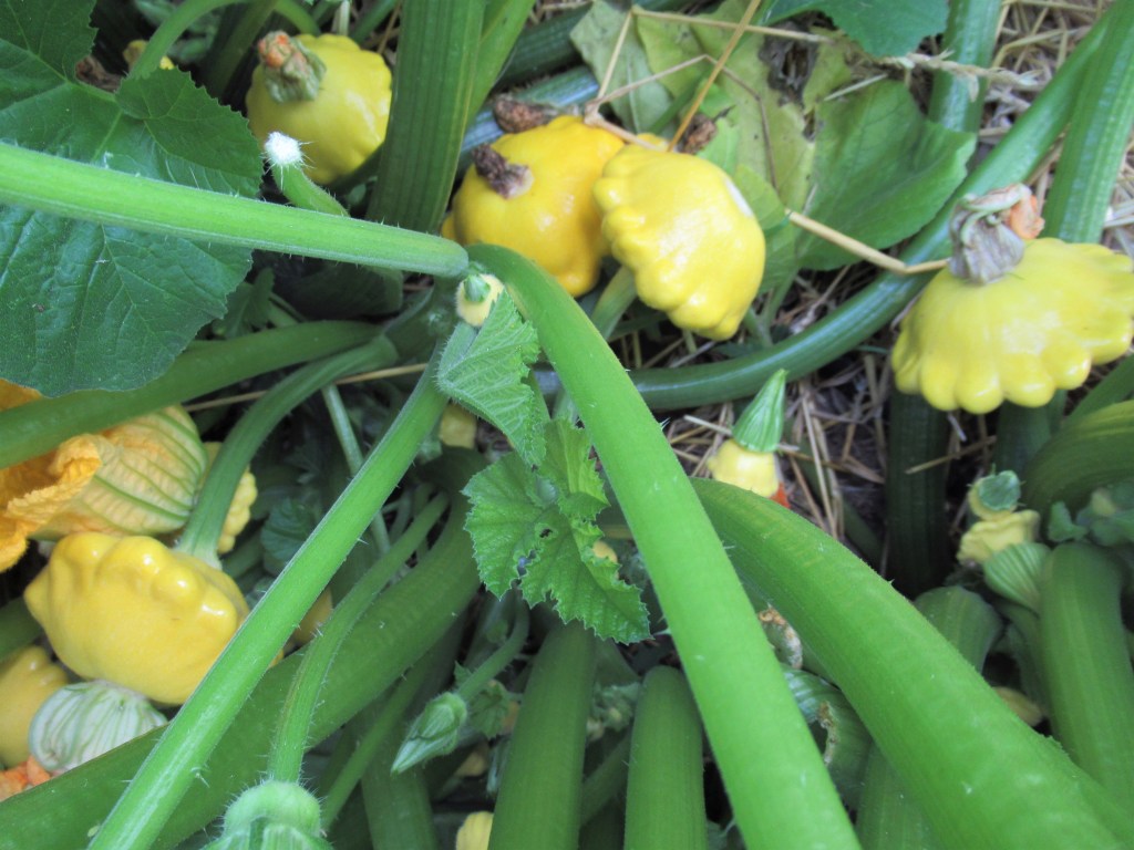Patty pan summer squash (above) and yellow zucchini (below) always start their season producing an enormous quantity of fruit. In a few weeks they will slow down and take a rest before (hopefully) resuming big production again.