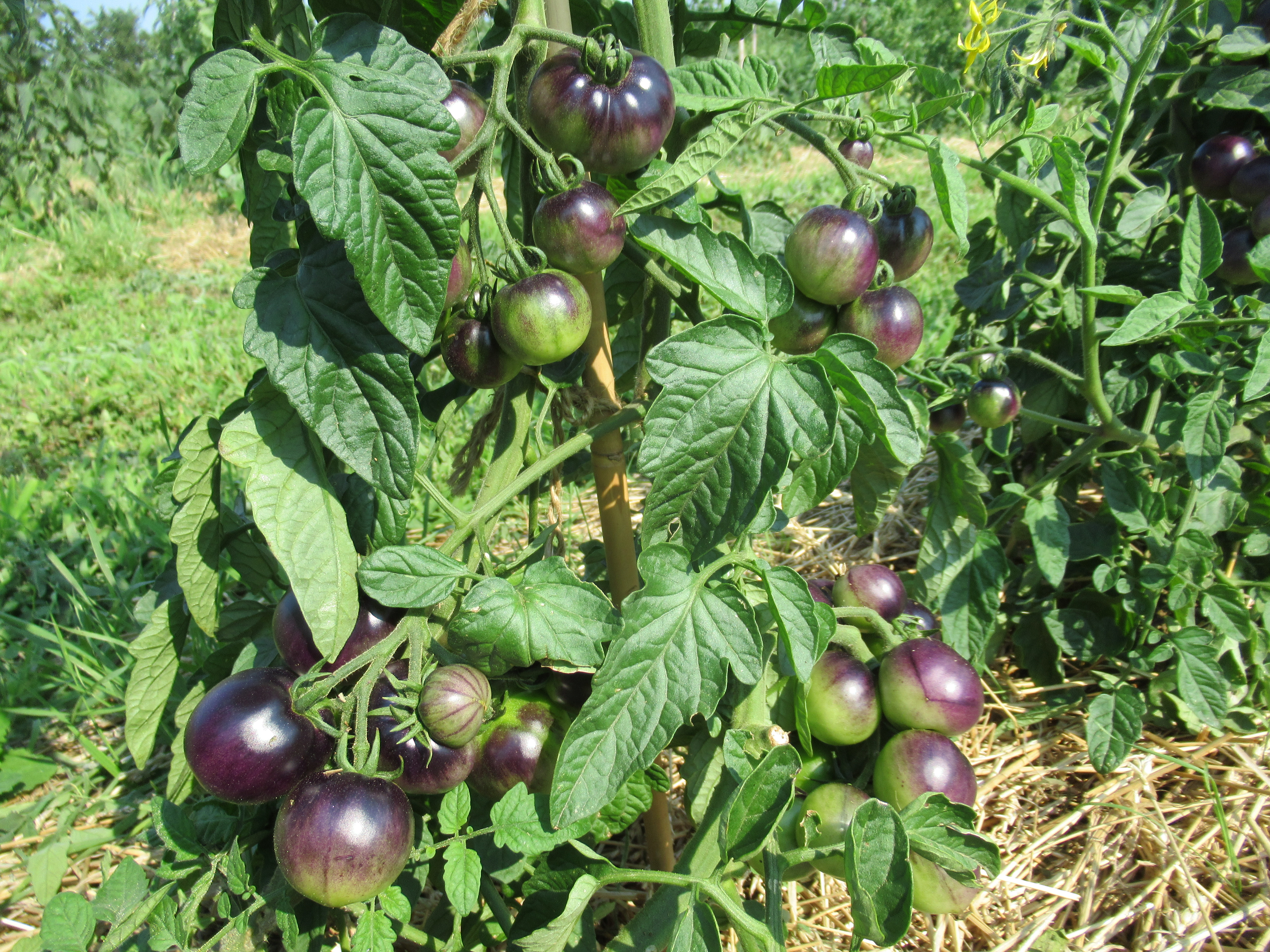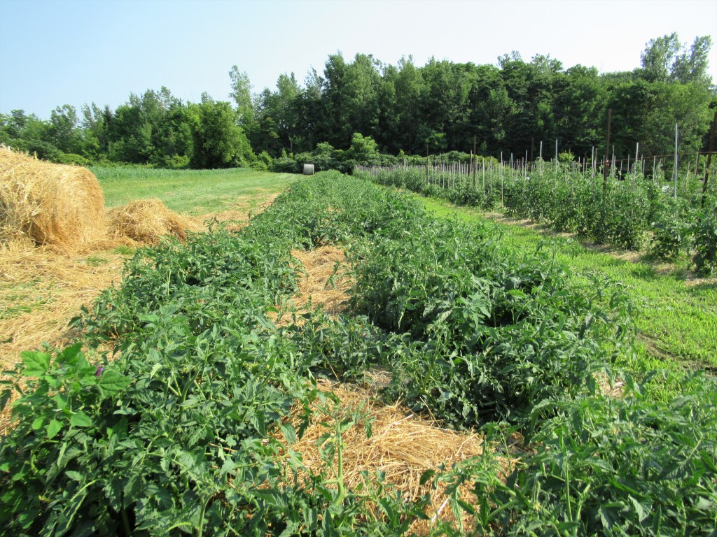 The beefsteak tomatoes which we do not stake, are growing so much we are adding more straw for them to sprawl on.