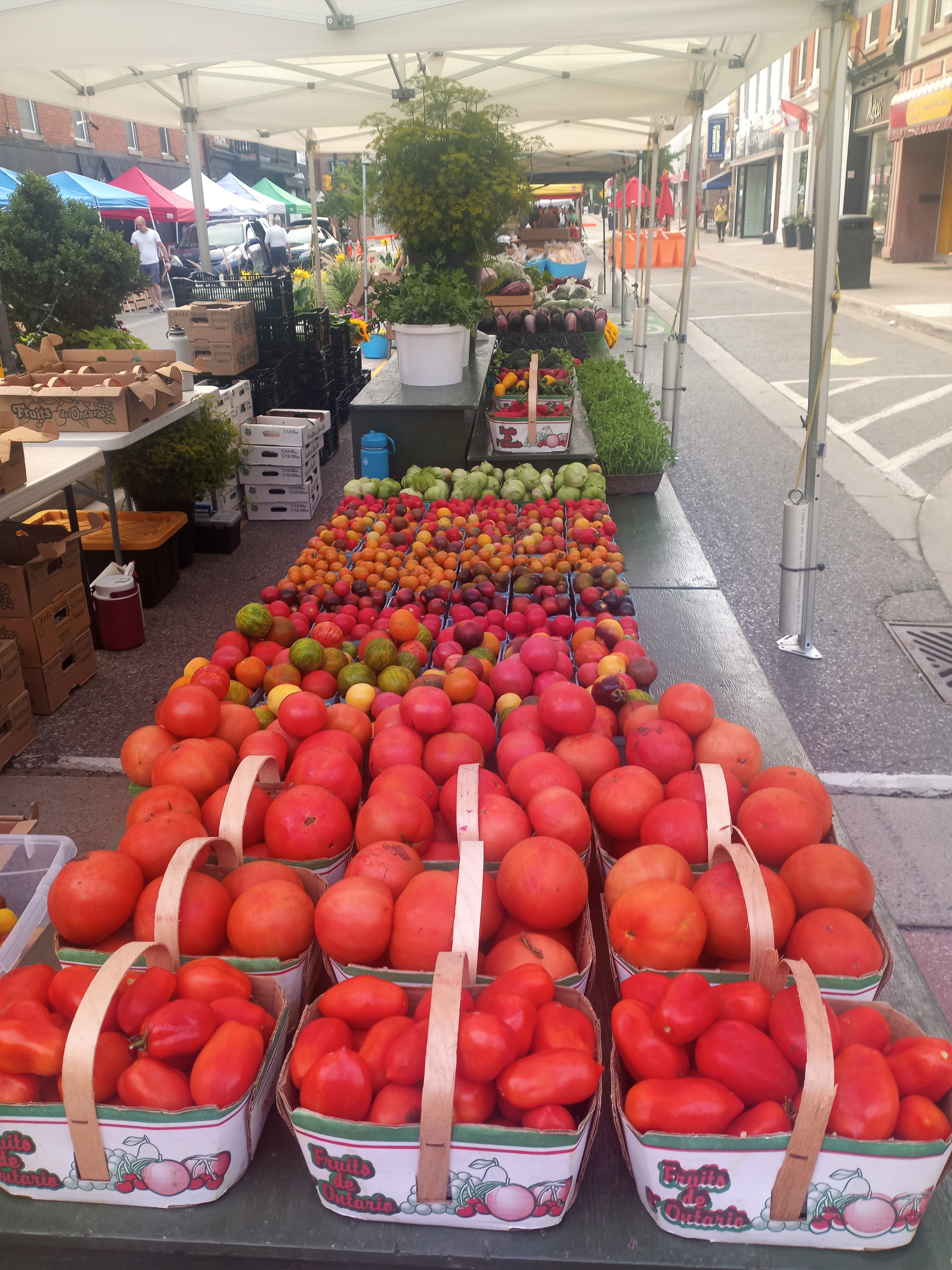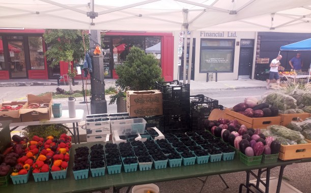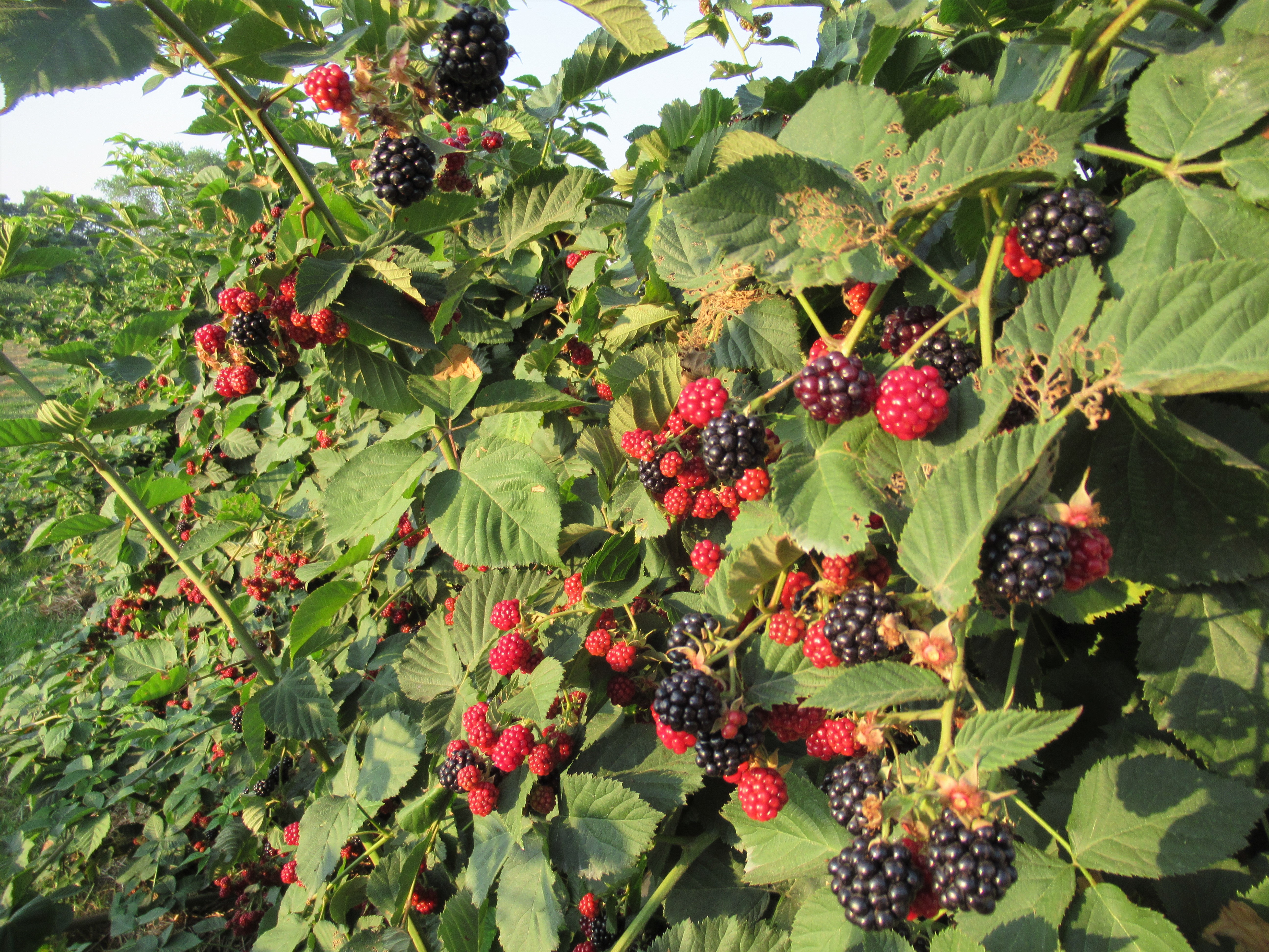 Peppers, blackberries, Chinese broccoli, tomatoes,