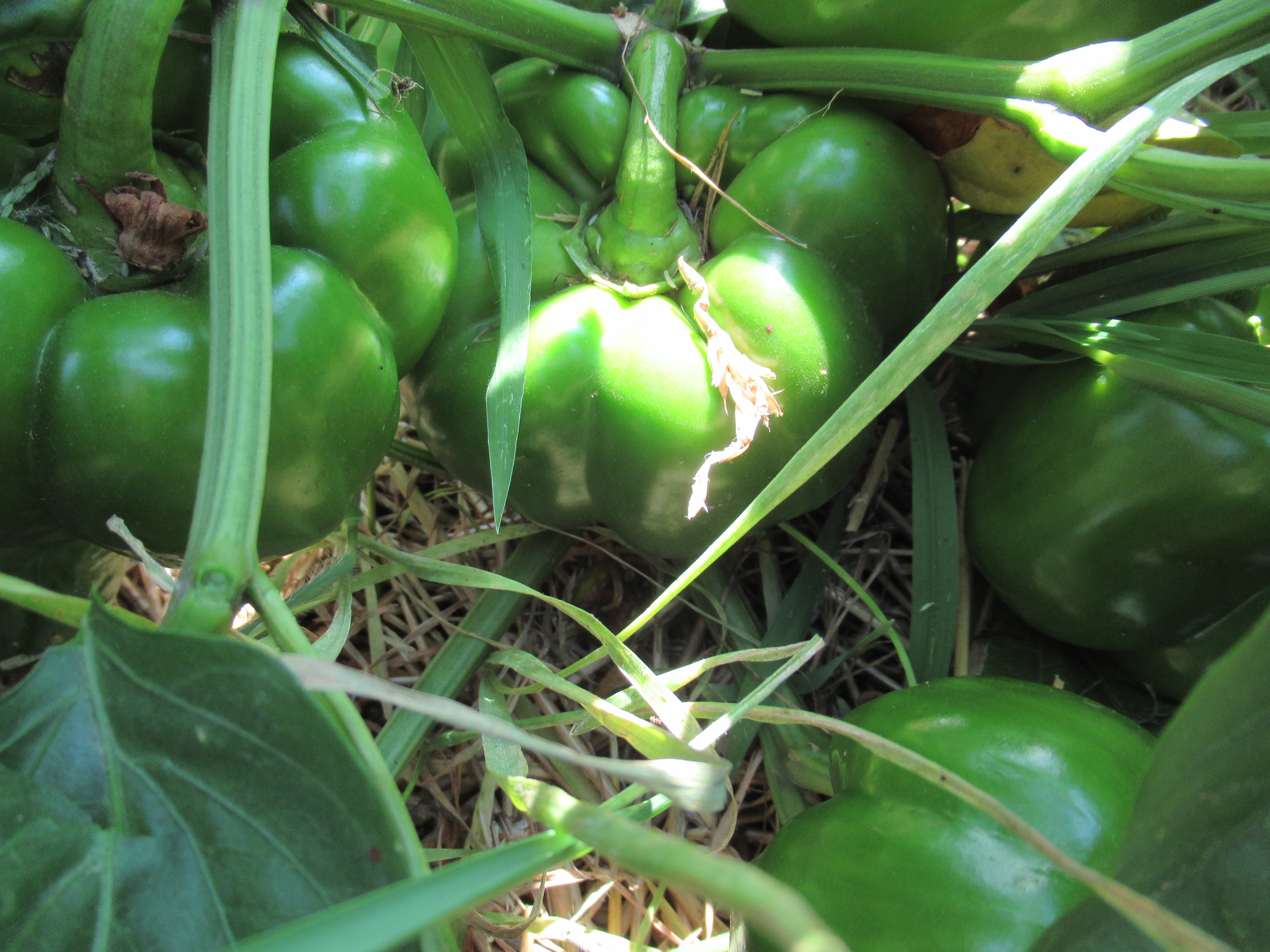 Our peppers are finally ripening. We have bell peppers in red, orange, yellow, purple & green. Shepherd peppers are long, tapered, red, very sweet peppers. We also grow mini-bell peppers in red, yellow & purple. Your box could include any of these this week.
