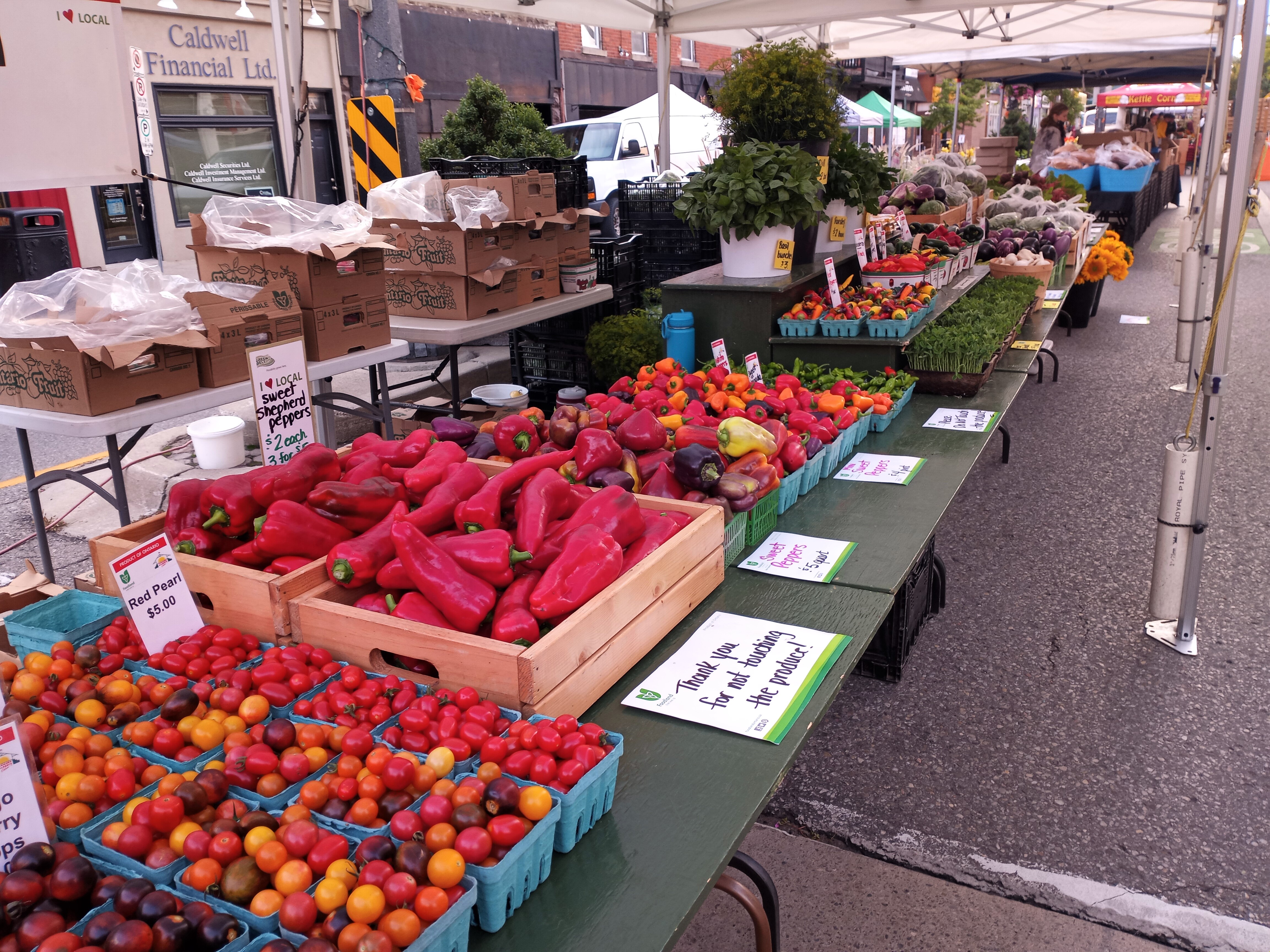 Squash, rapini, bibb lettuce, shishito peppers, sweet peppers,
