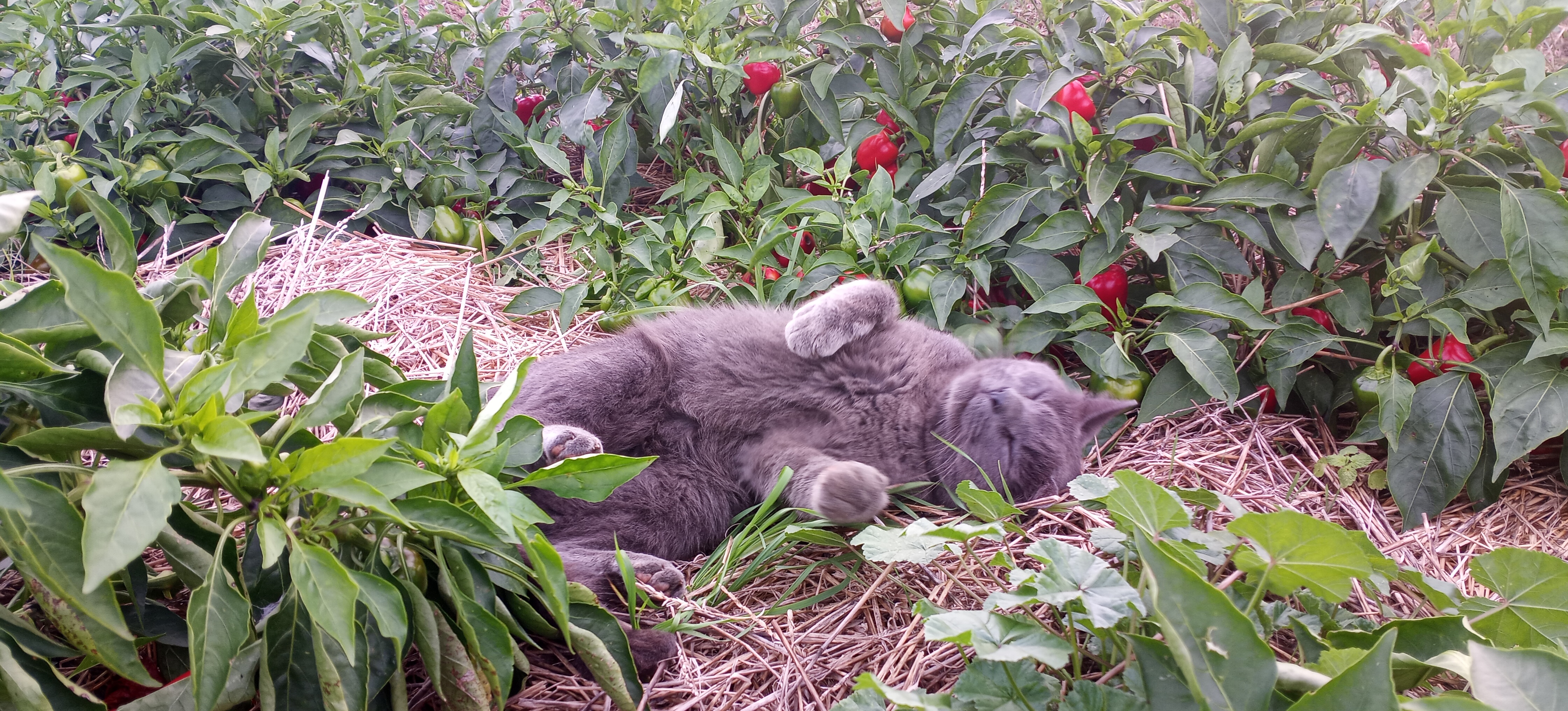 Today we picked all the peppers and eggplant for the last time. There wasn’t much. Then I hitched the mower to the tractor and mowed all the plants down.