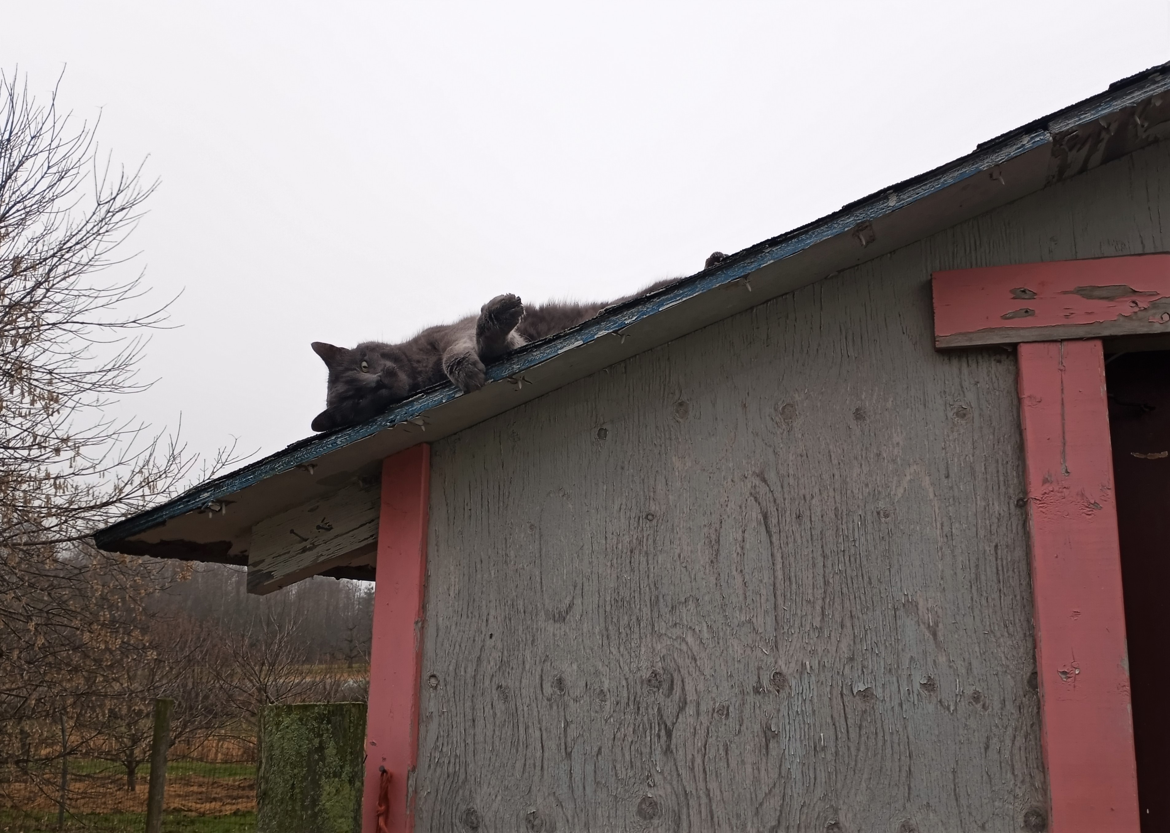 The Flynns are especially needy this time of year – if it takes jumping on the chicken house roof during chores to get noticed, then so be it!
