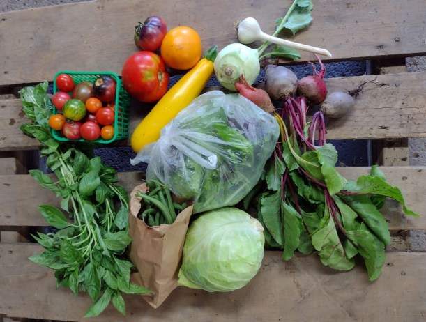 - Green beans and tomatoes – cherry & large beefsteaks are also in the box.