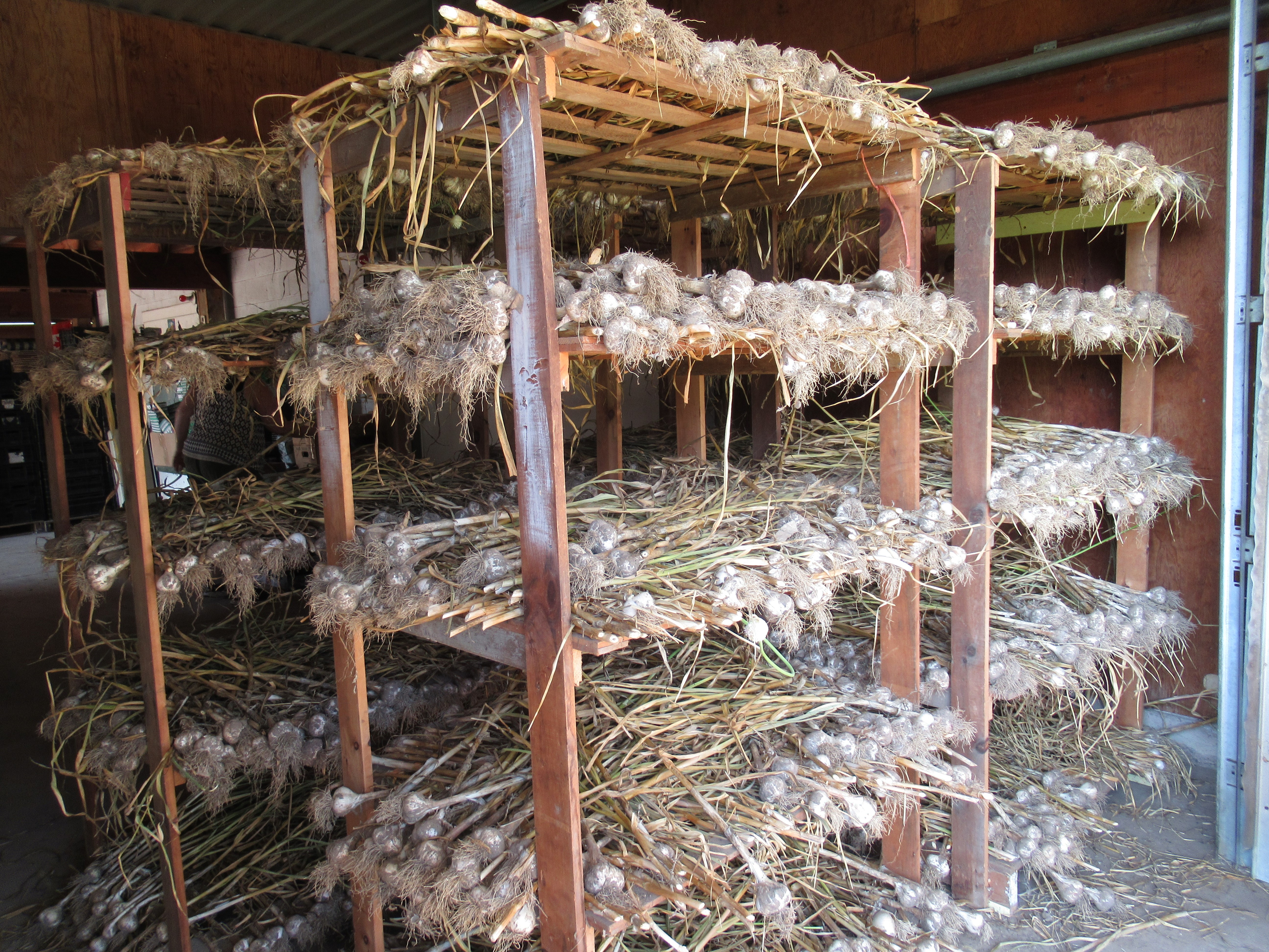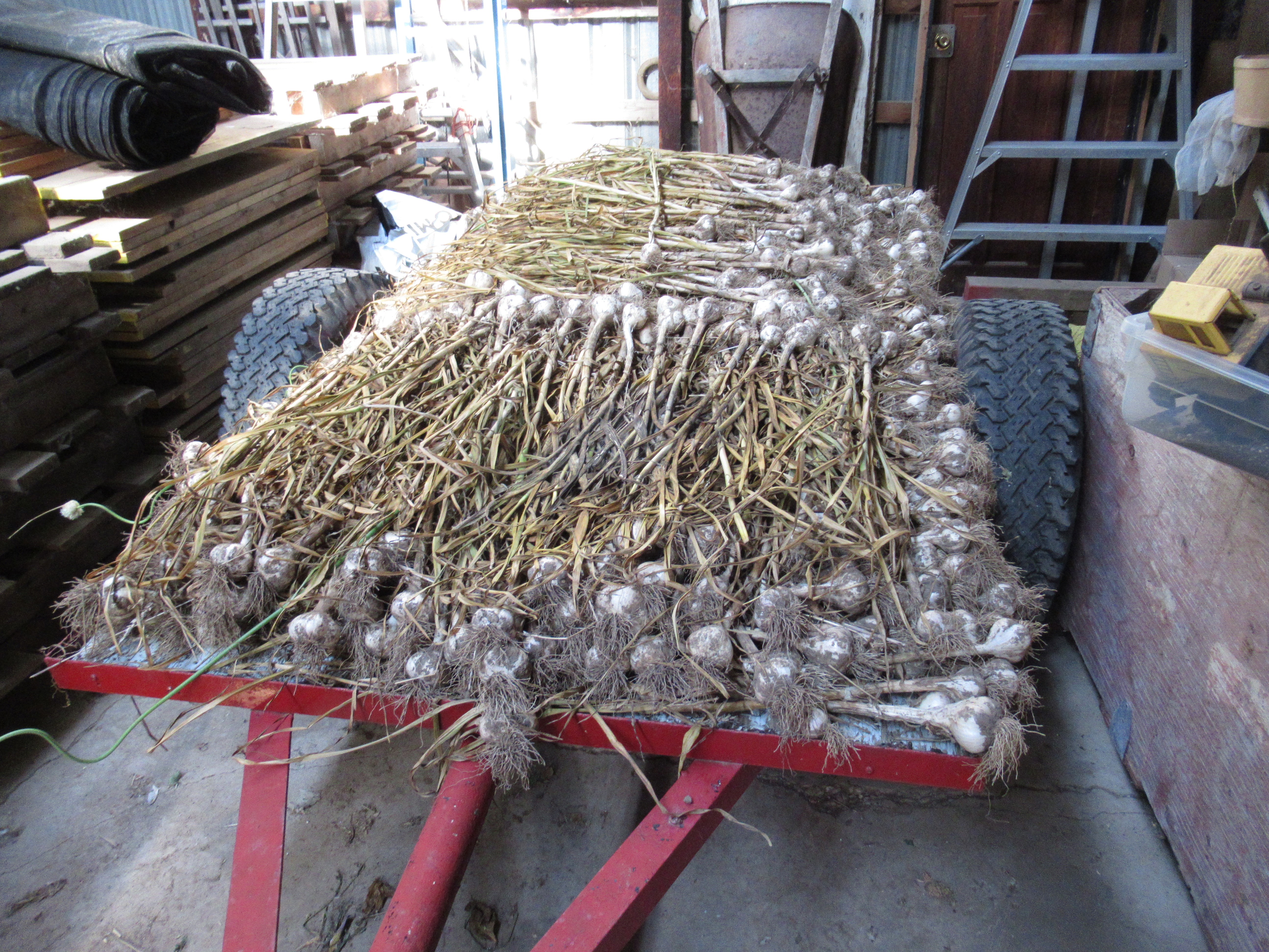 There is an abundance of garlic as well – drying in the greenhouse and in the barn …