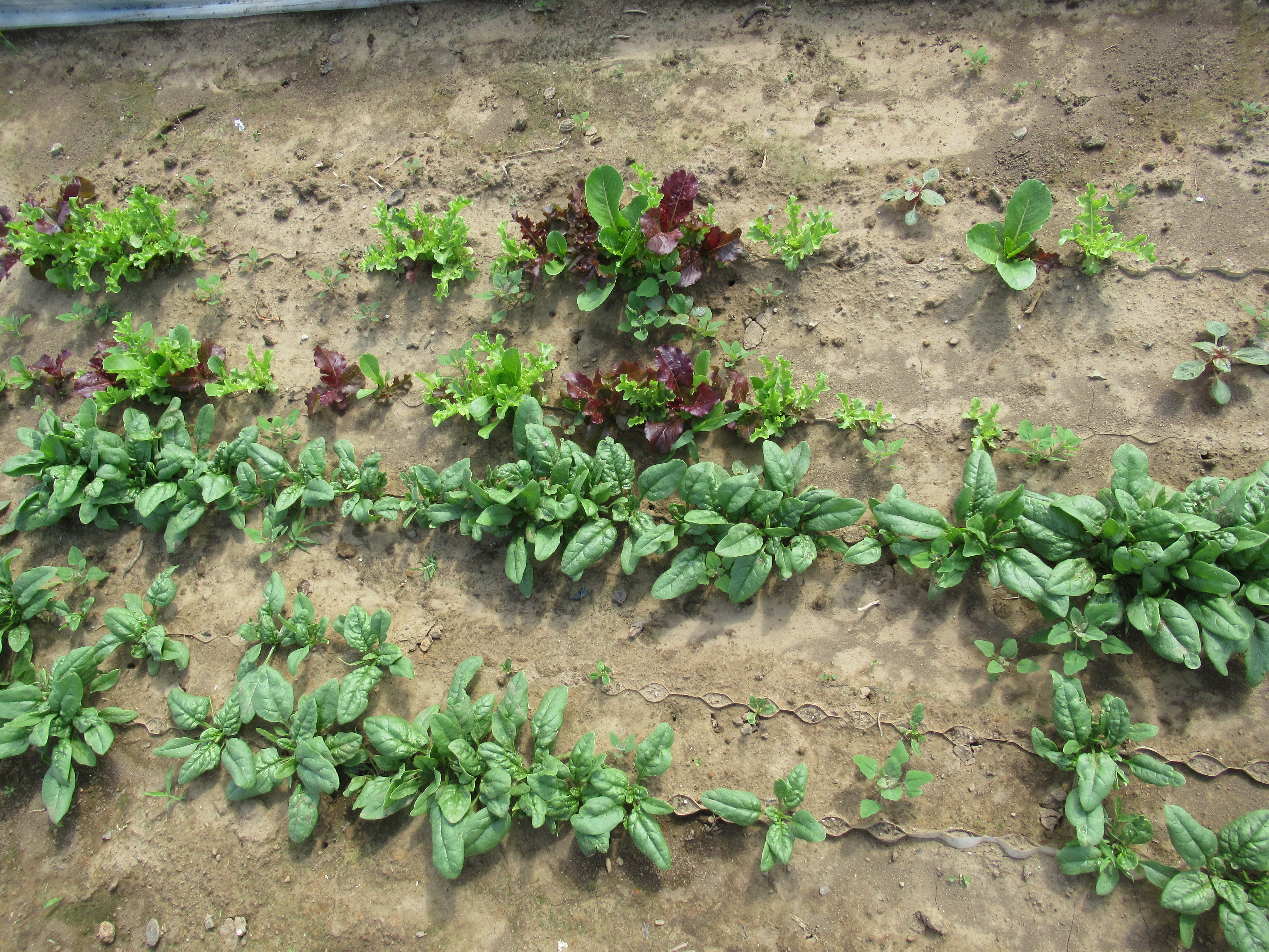 - Salad greens this week will be mini-romaine lettuce and bok choy. (Bok choy is not a fan of the hot weather we’ve had lately so it has not formed perfectly – but it tastes great!)