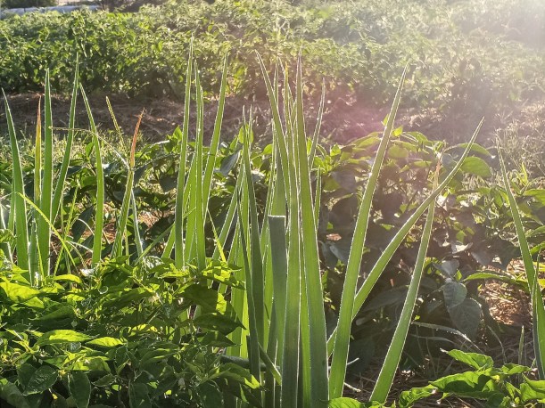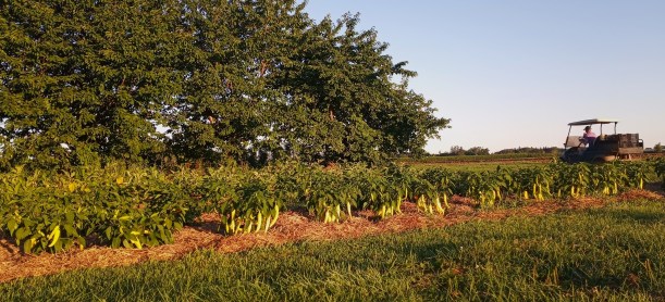 • The first sweet peppers of the season are in the box this week – sweet green peppers. Did you know that a green pepper is actually an unripe pepper? Most peppers will eventually turn red (or orange or yellow or …) as they mature. That’s why the coloured peppers are sweeter than the green. We will have all the colours in a few weeks as the fruit ripens.