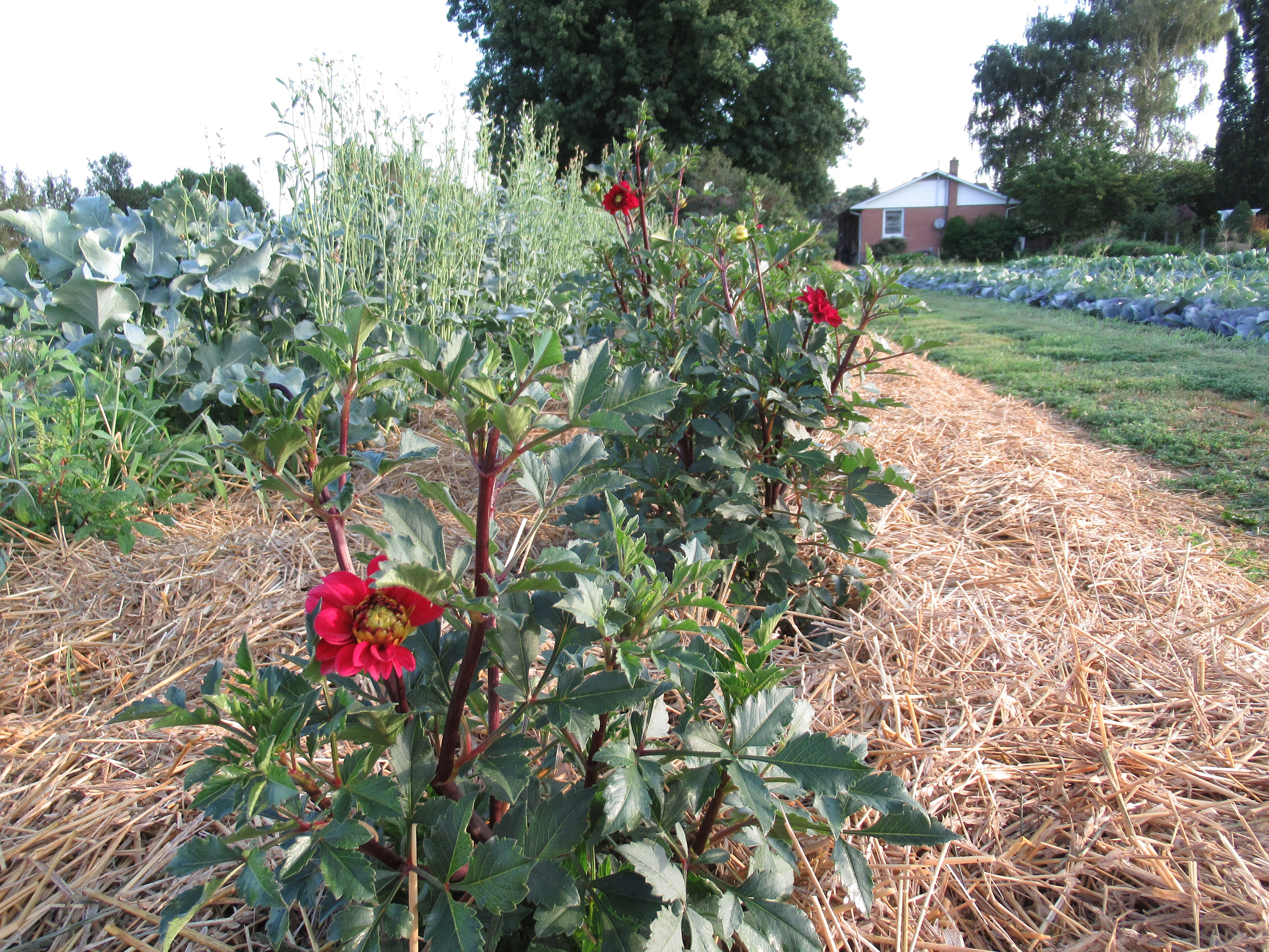 We have a 100′ row of dahlias with the most beautiful, burgundy coloured flowers, just starting to open. They are not for selling – just for us to enjoy.