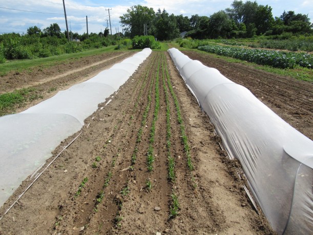 Some of our recent plantings. These are mainly salad greens – lettuce & spinach, plus arugula & bok choy under the insect netting.