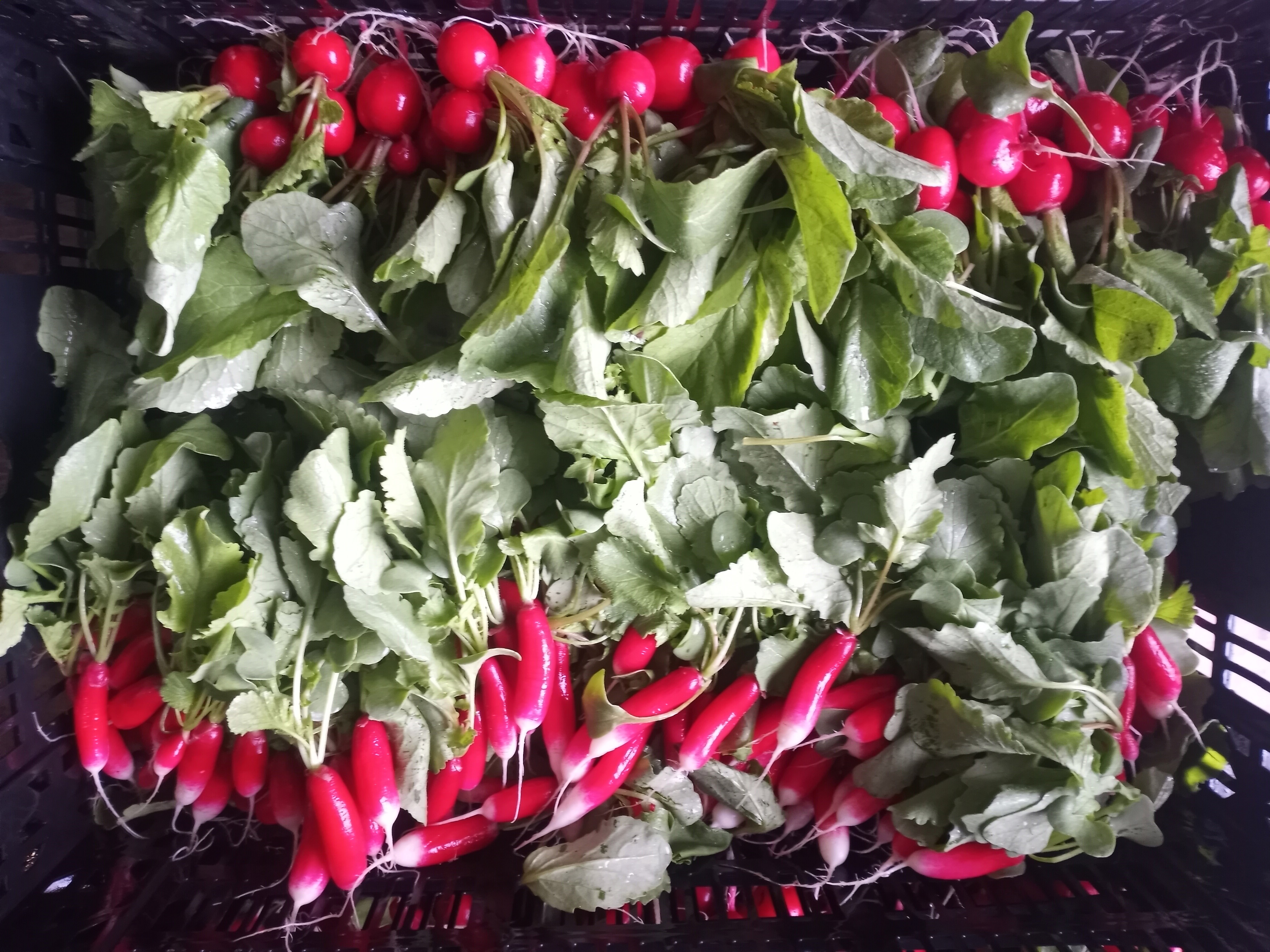 - Radishes, salad greens, green onions & garlic complete the box this week – our 2nd last week of the season.