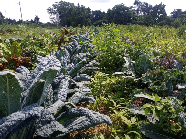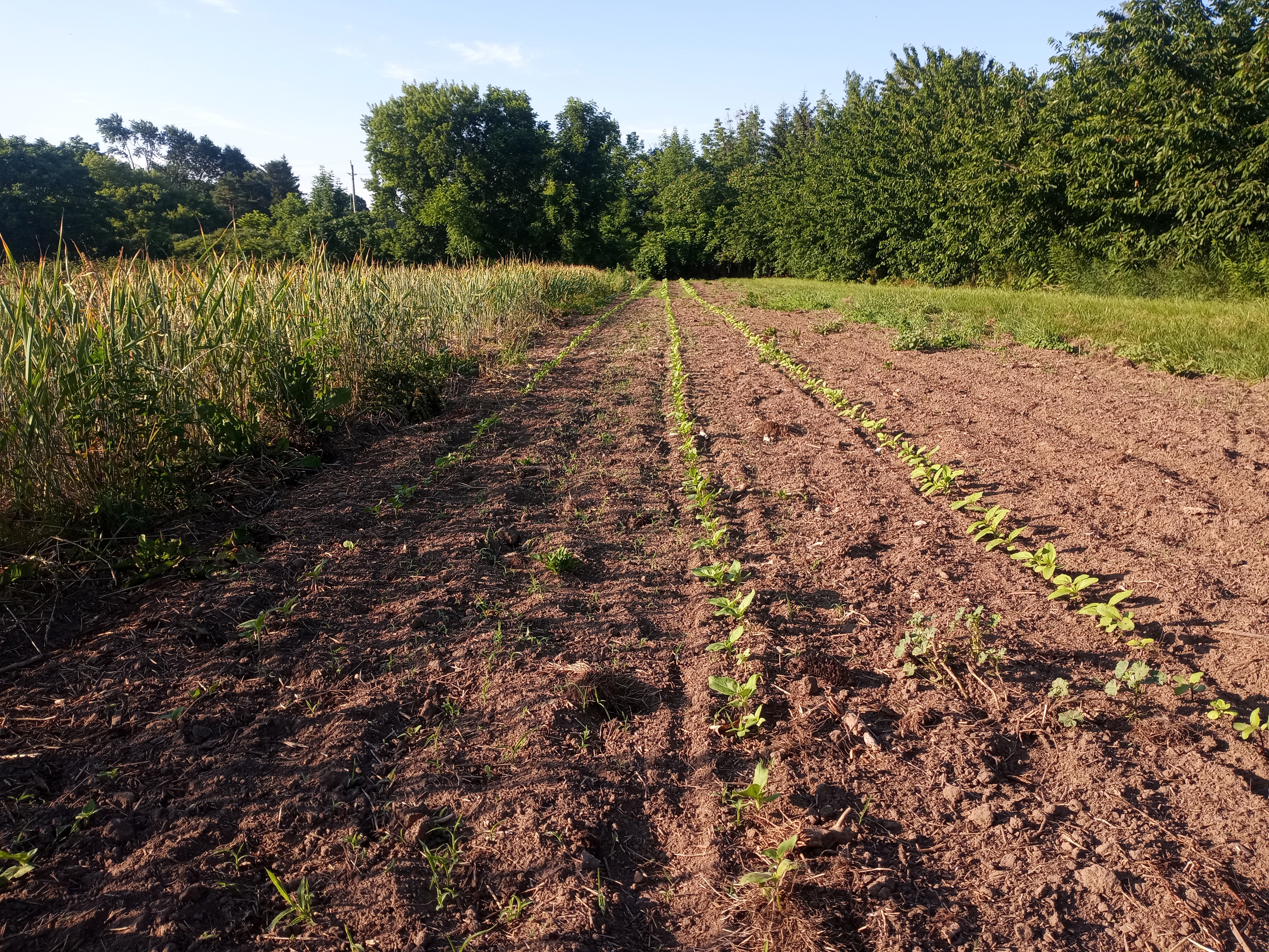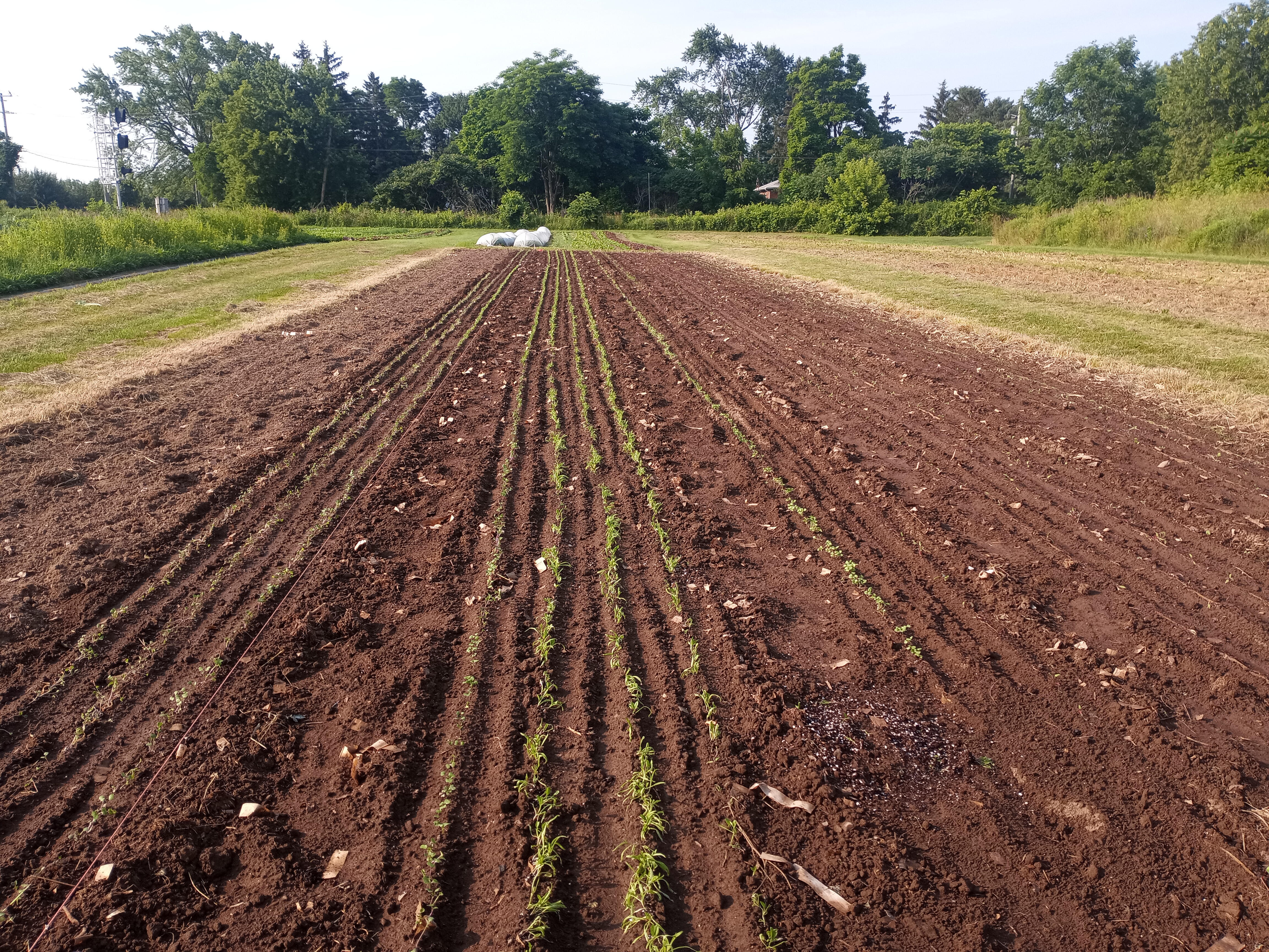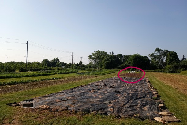We moved our occultation tarp this week (For an explanation of occultation see https://thiessenfarms.com/2017/04/12/occultation). That gave us a beautiful, weed-free patch of ground, which we promptly filled with transplants.