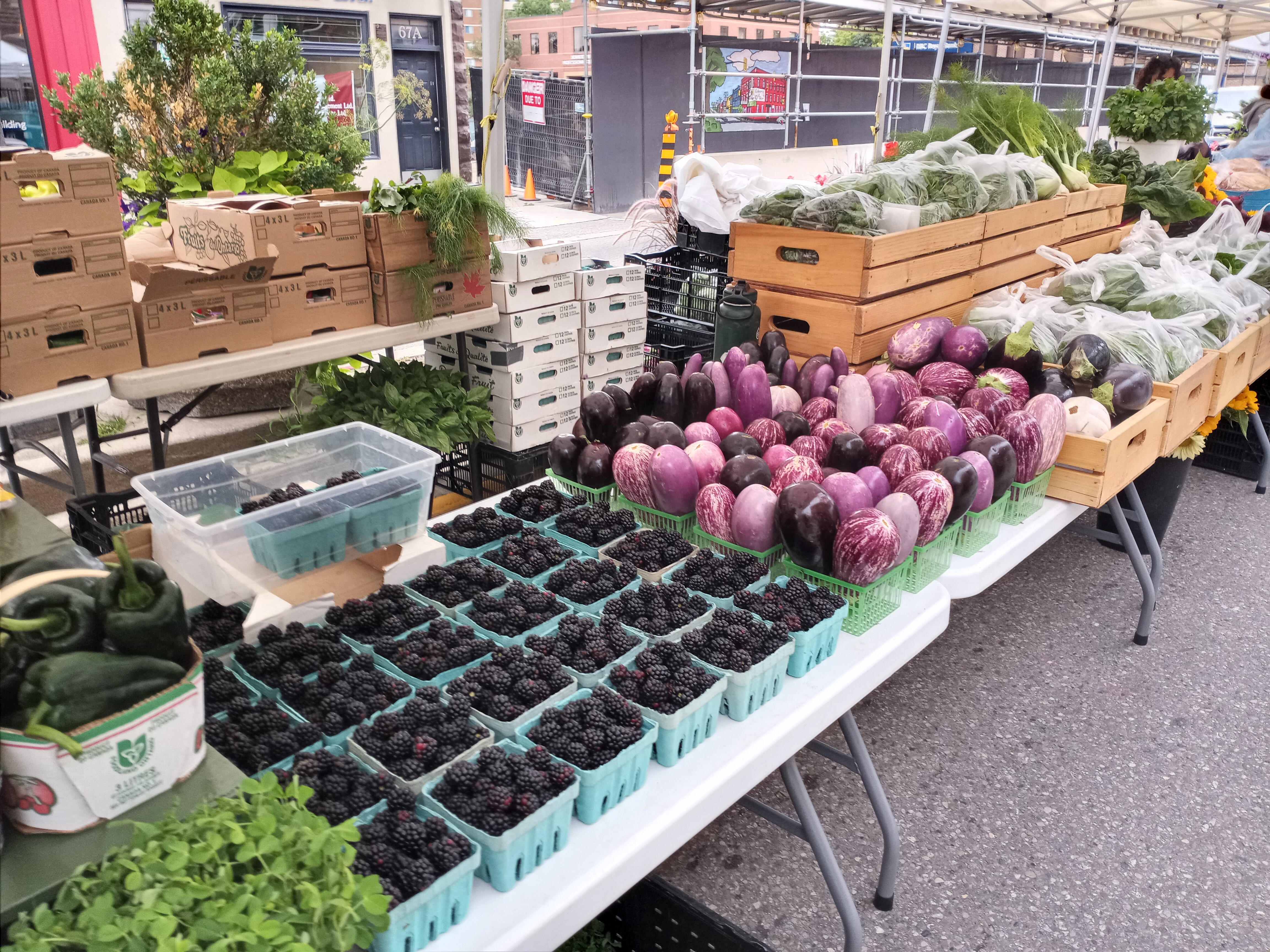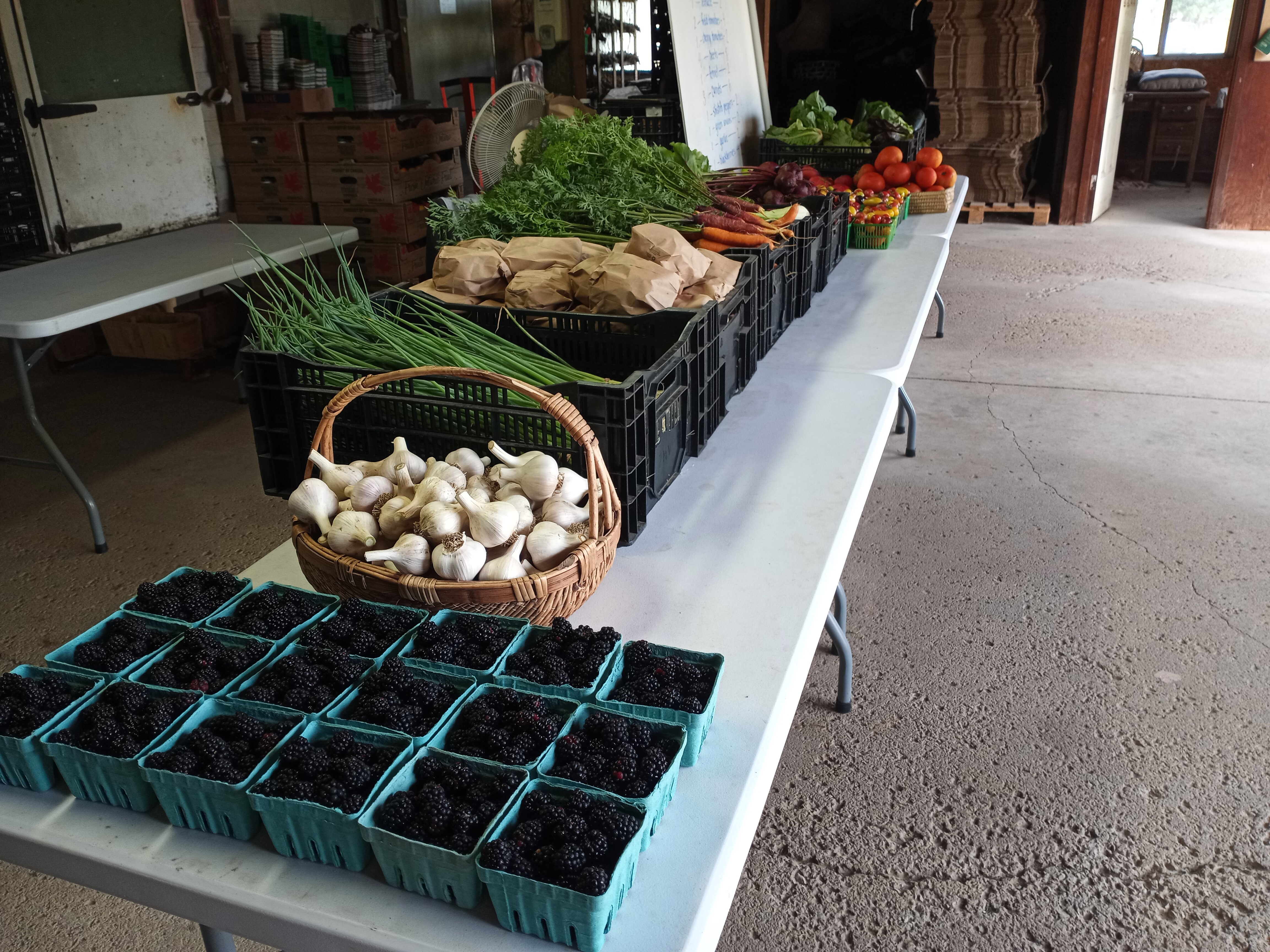 Blackberries, tomatoes, green beans, green peppers, garlic, onions, zucchini, spinach, arugula.