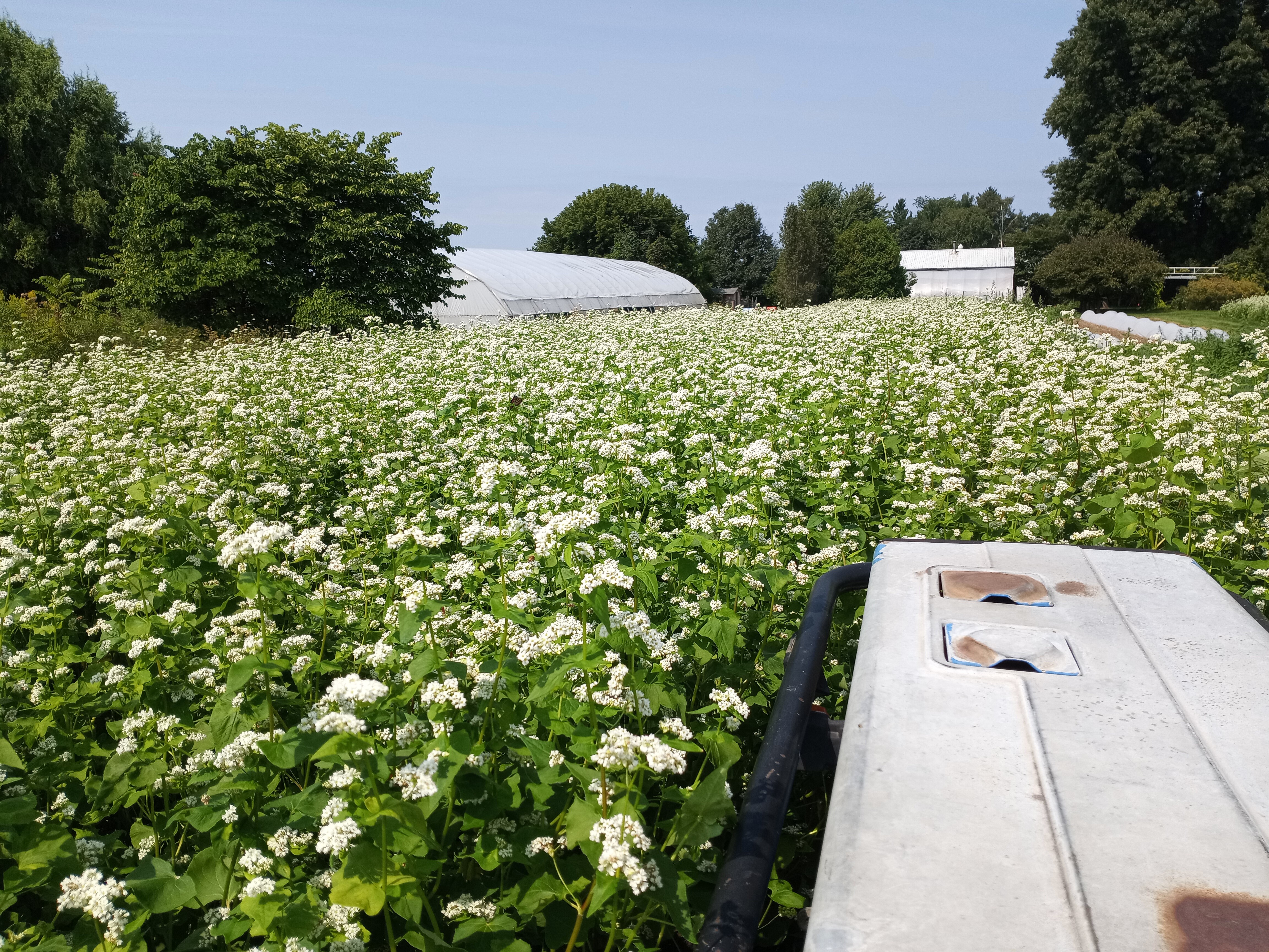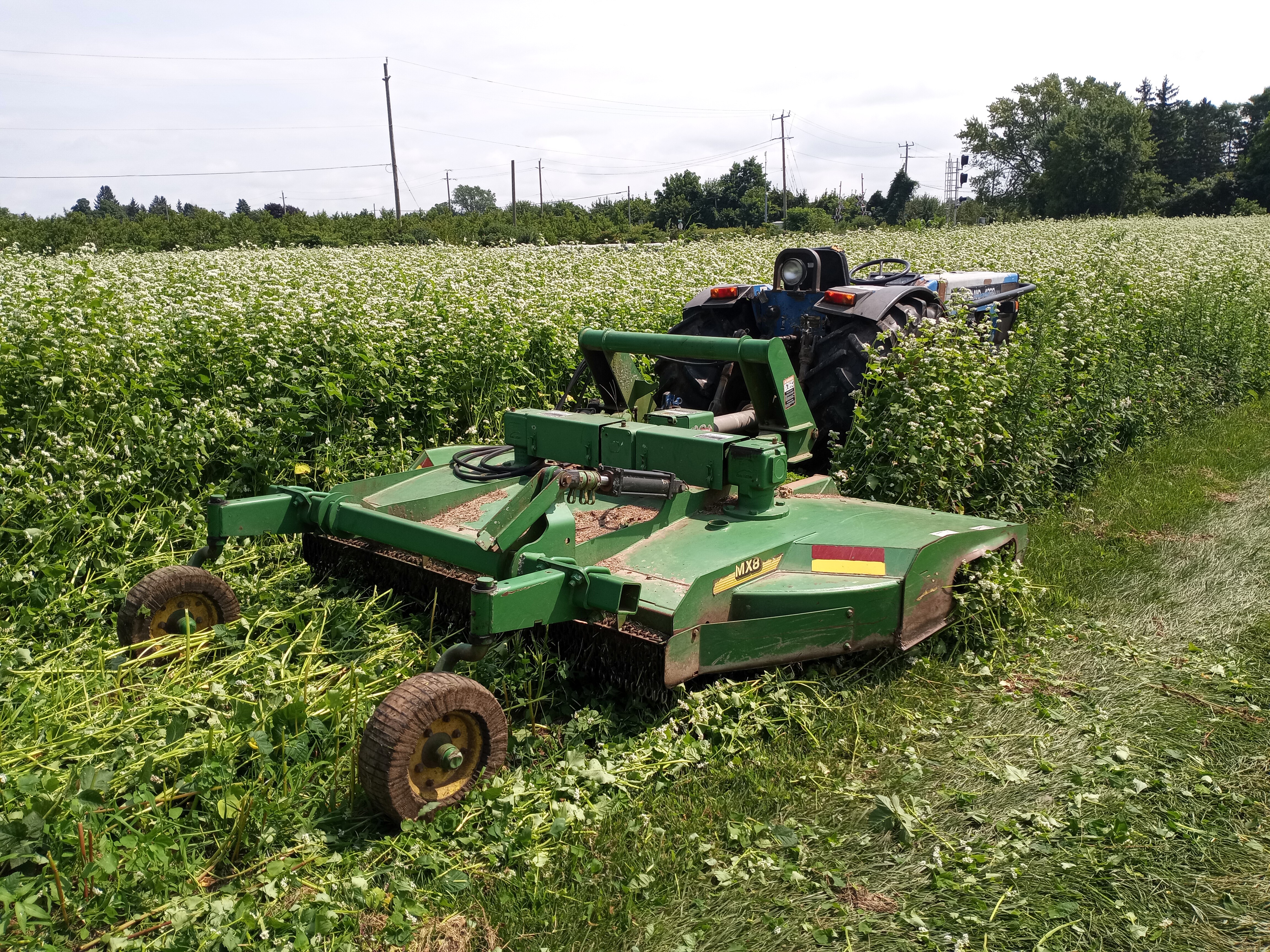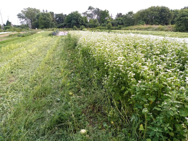 I mowed down the buckwheat fields today. They were filled with so many bees, insects, birds and even monarch butterflies. So I left some areas uncut for them.