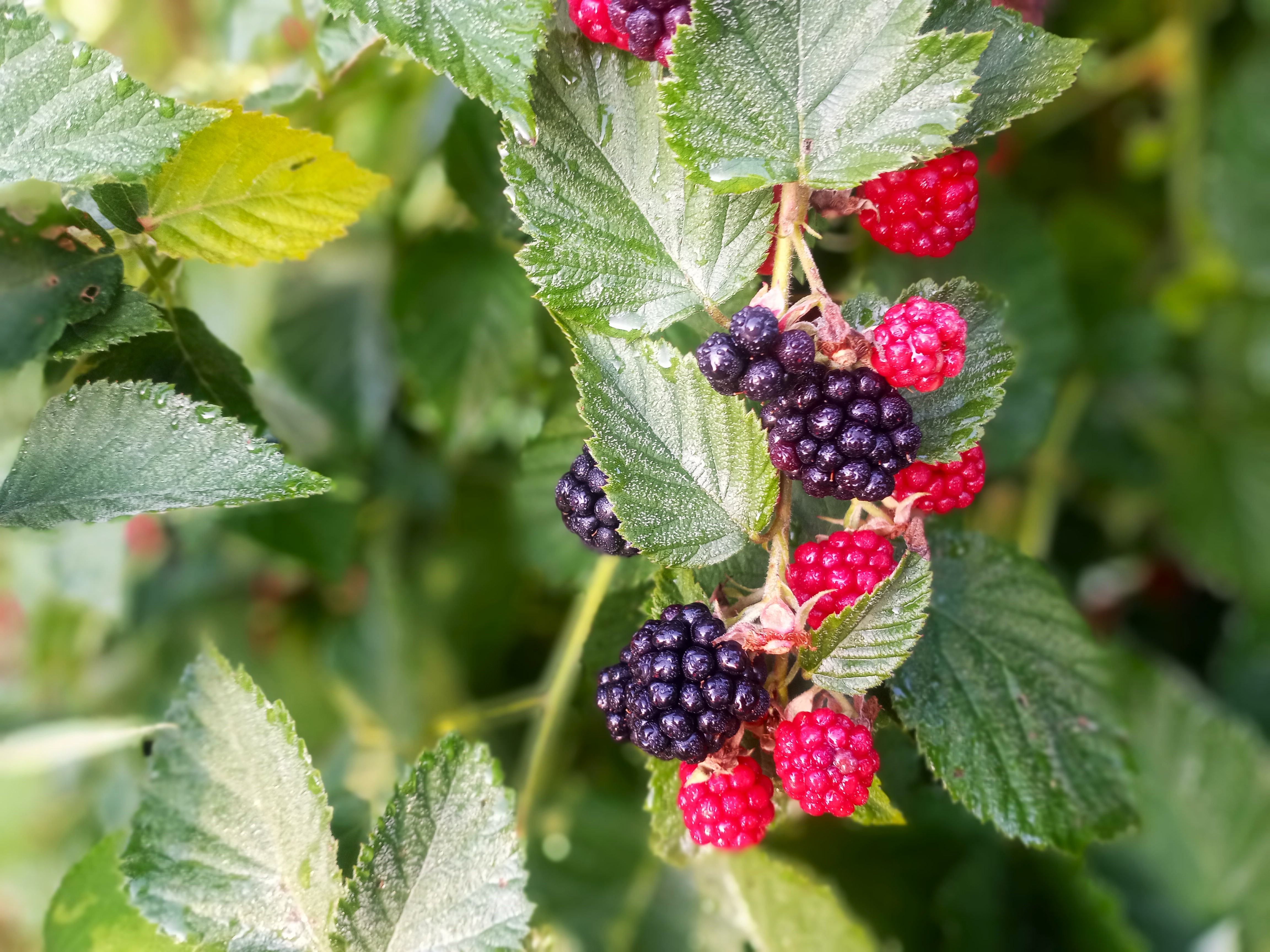 Carrots, eggplant, garlic, fennel, blackberries, tomatoes, onions, sweet peppers, green beans.
