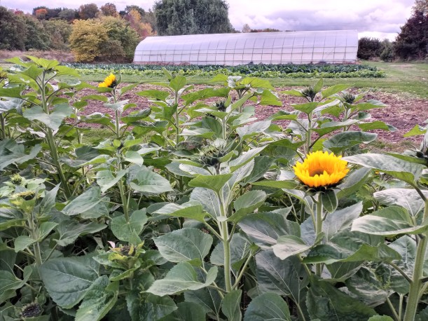 Here are the last sunflowers finally beginning to bloom – the patch that was supposed to be harvested for the Thanksgiving market!