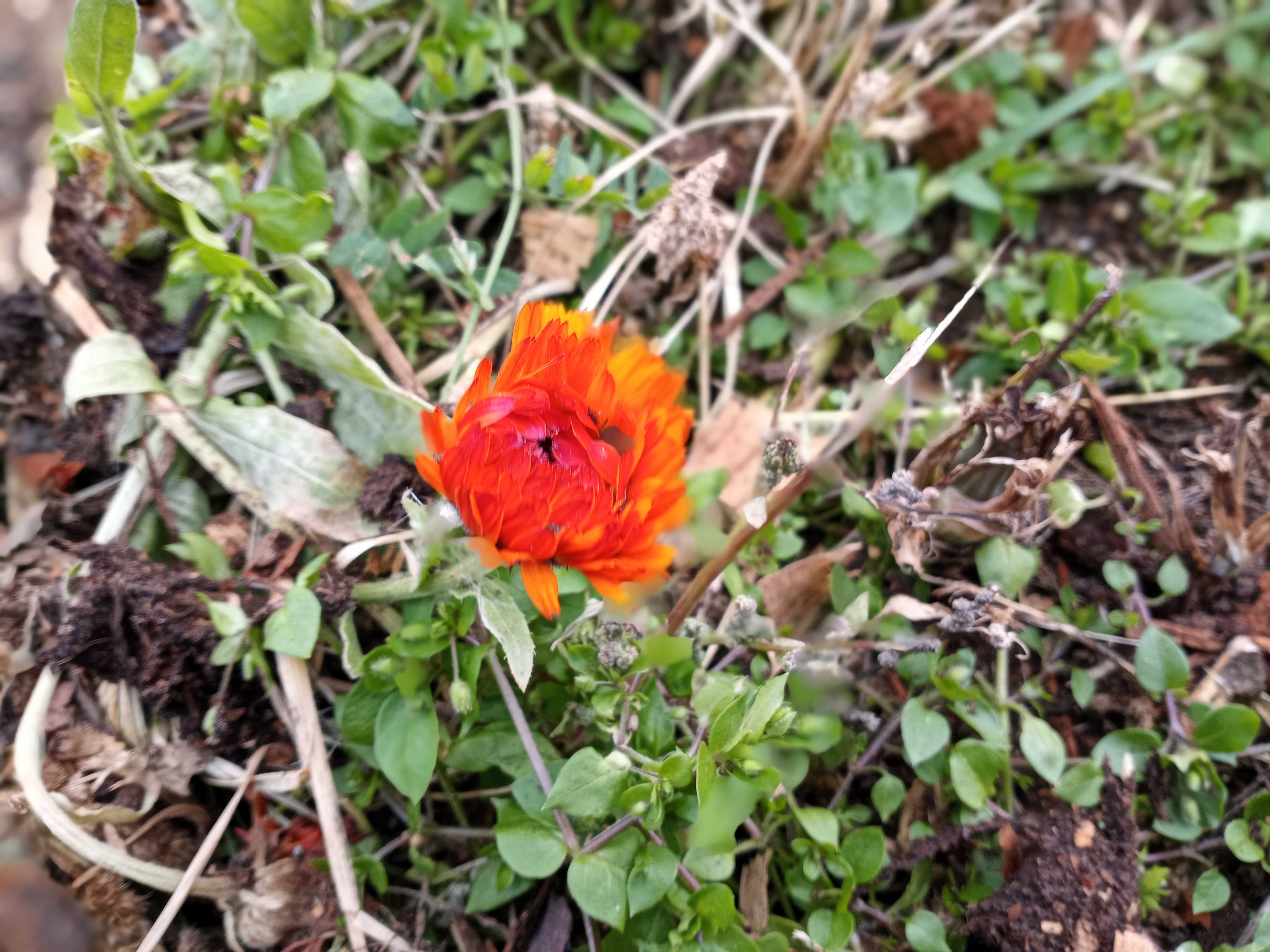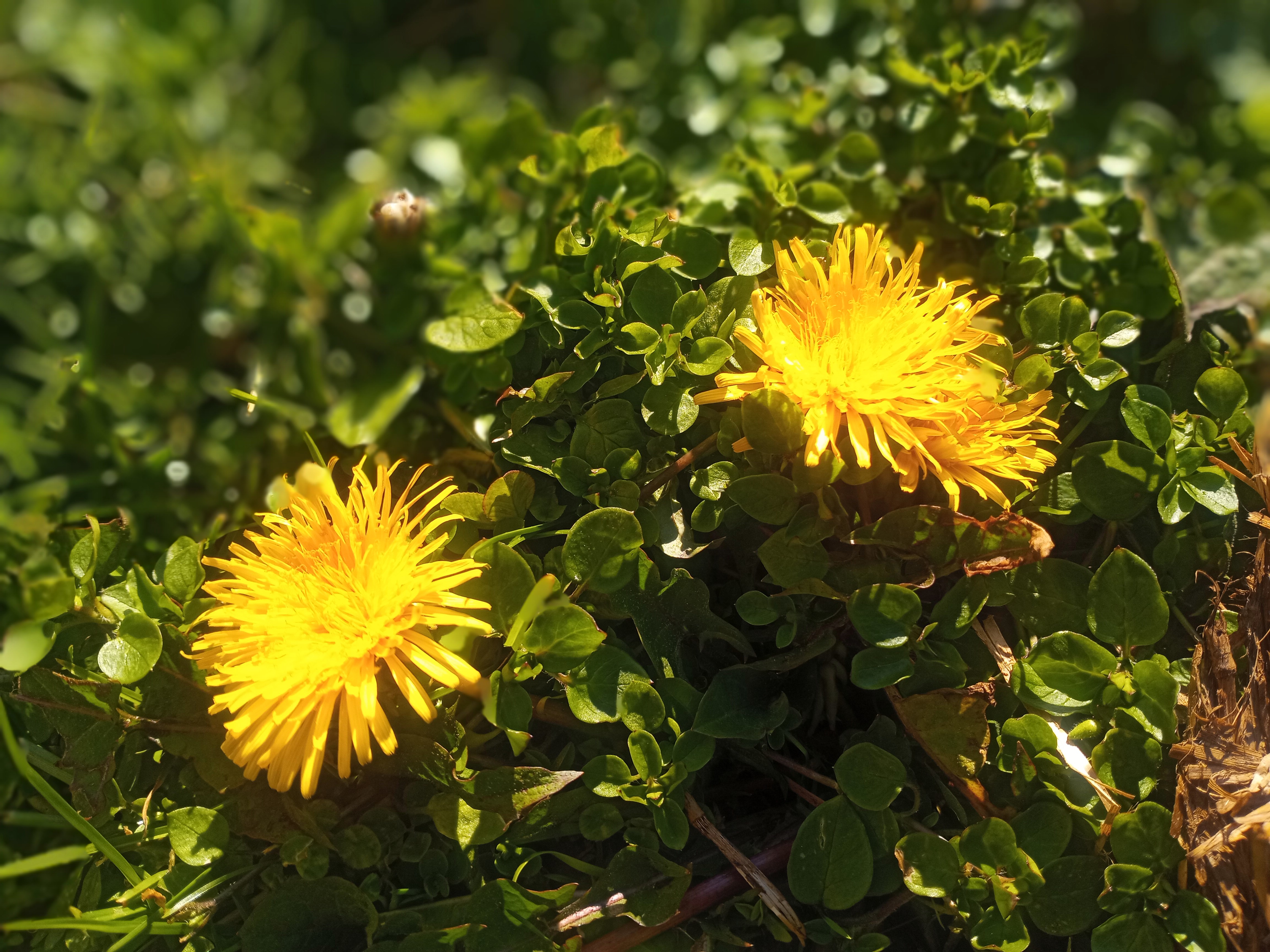 Found growing in the fields this week – dandelions, and 1 brave flower in our edible flower bed still hanging on.