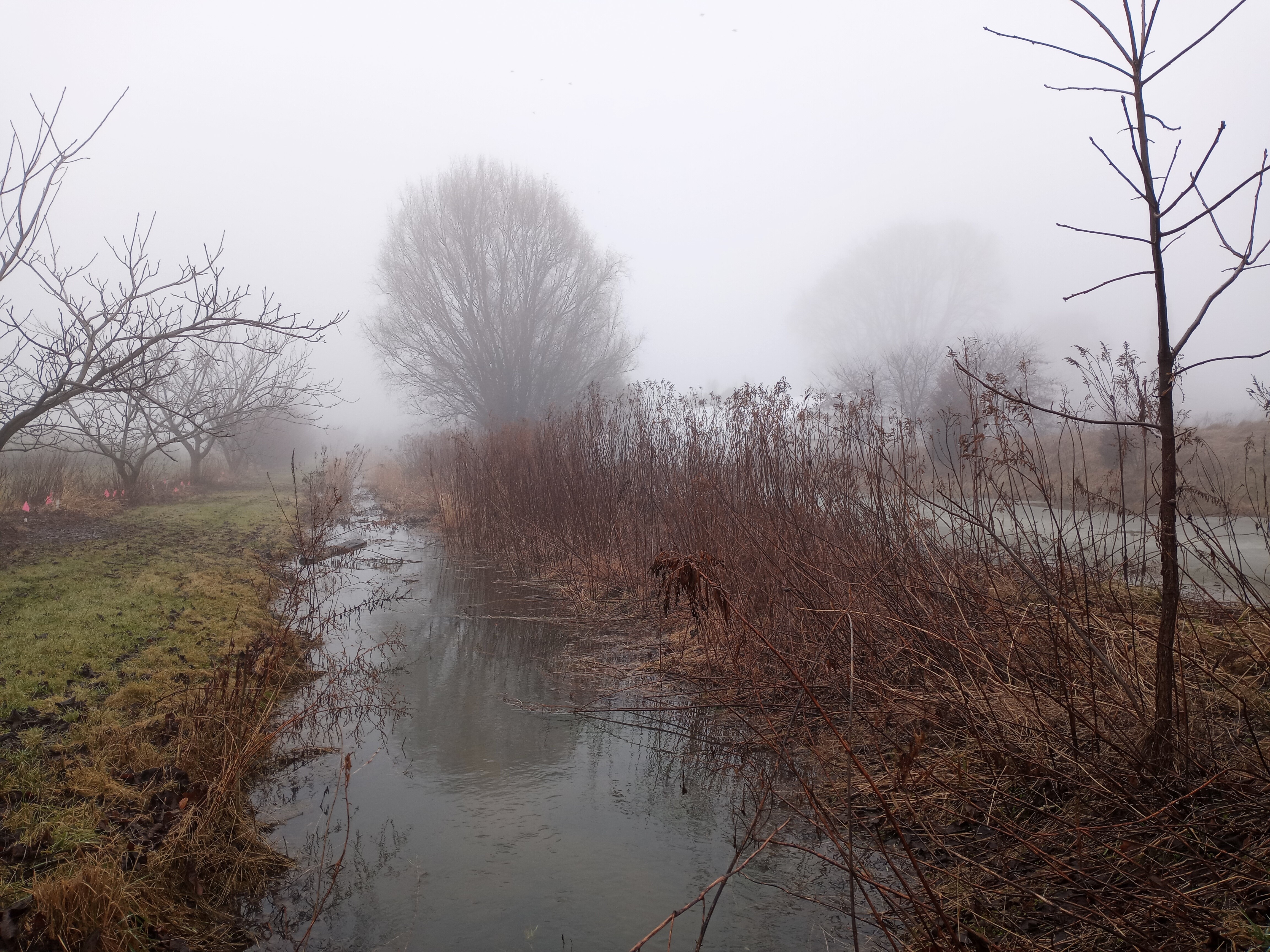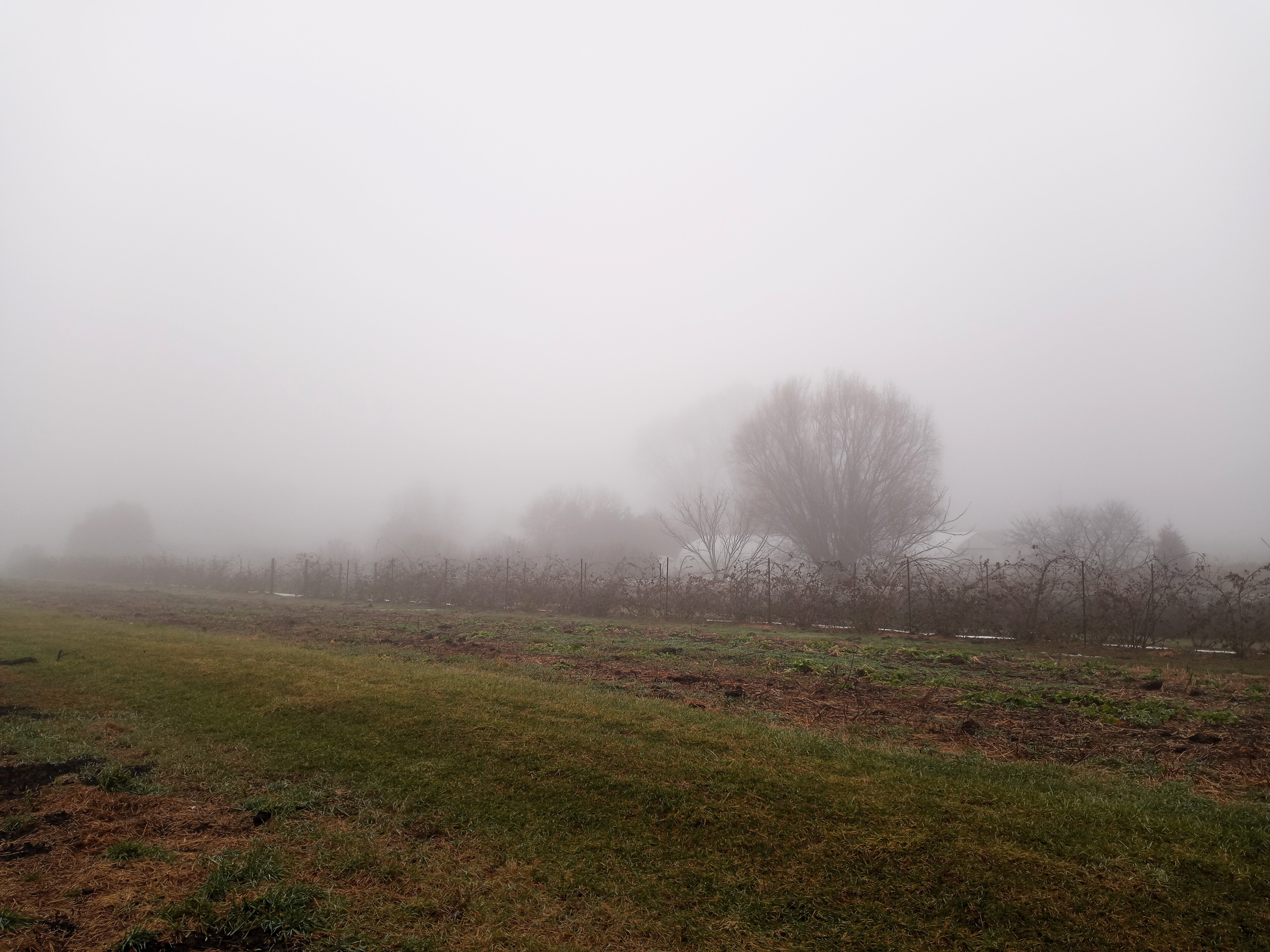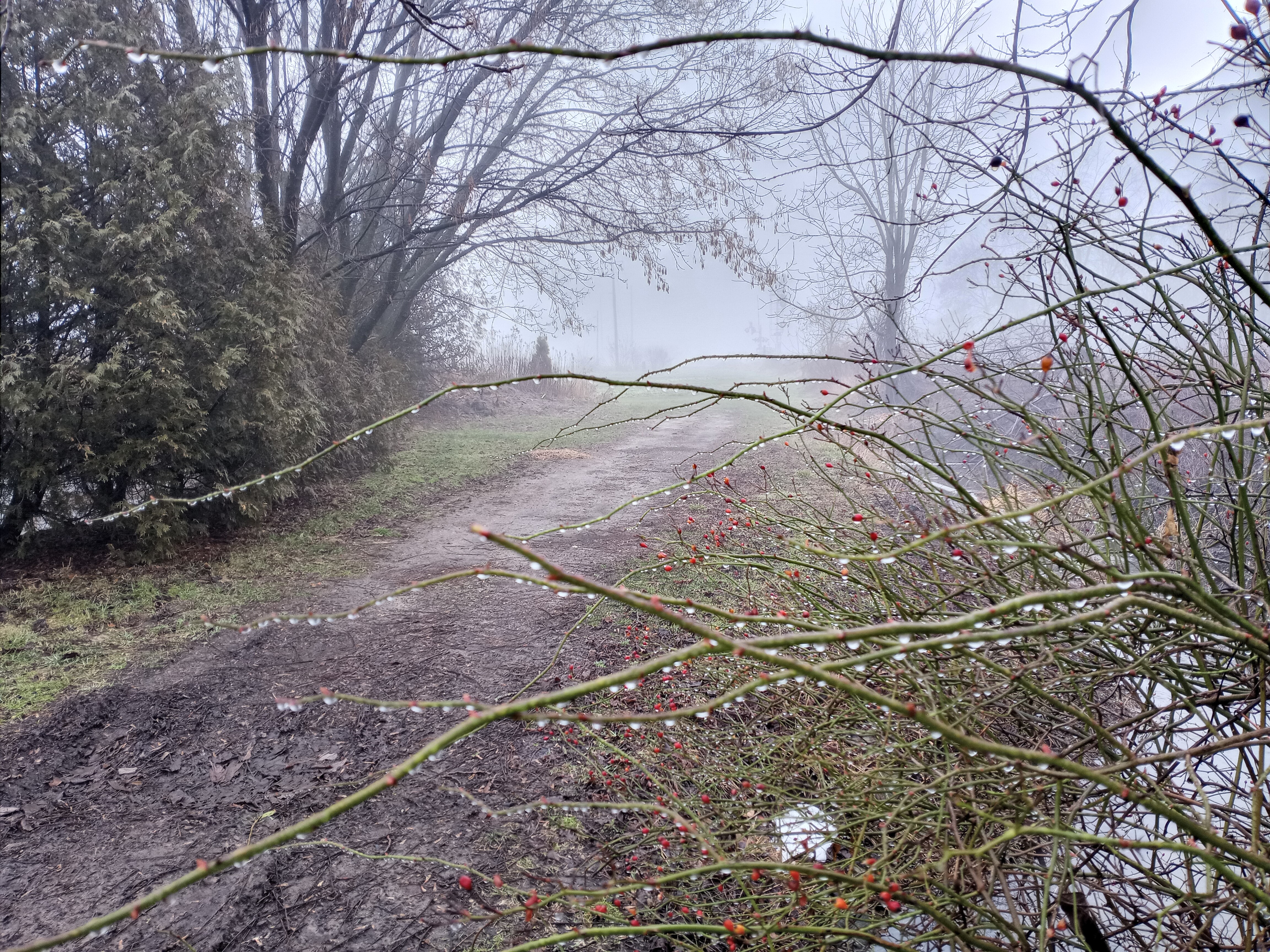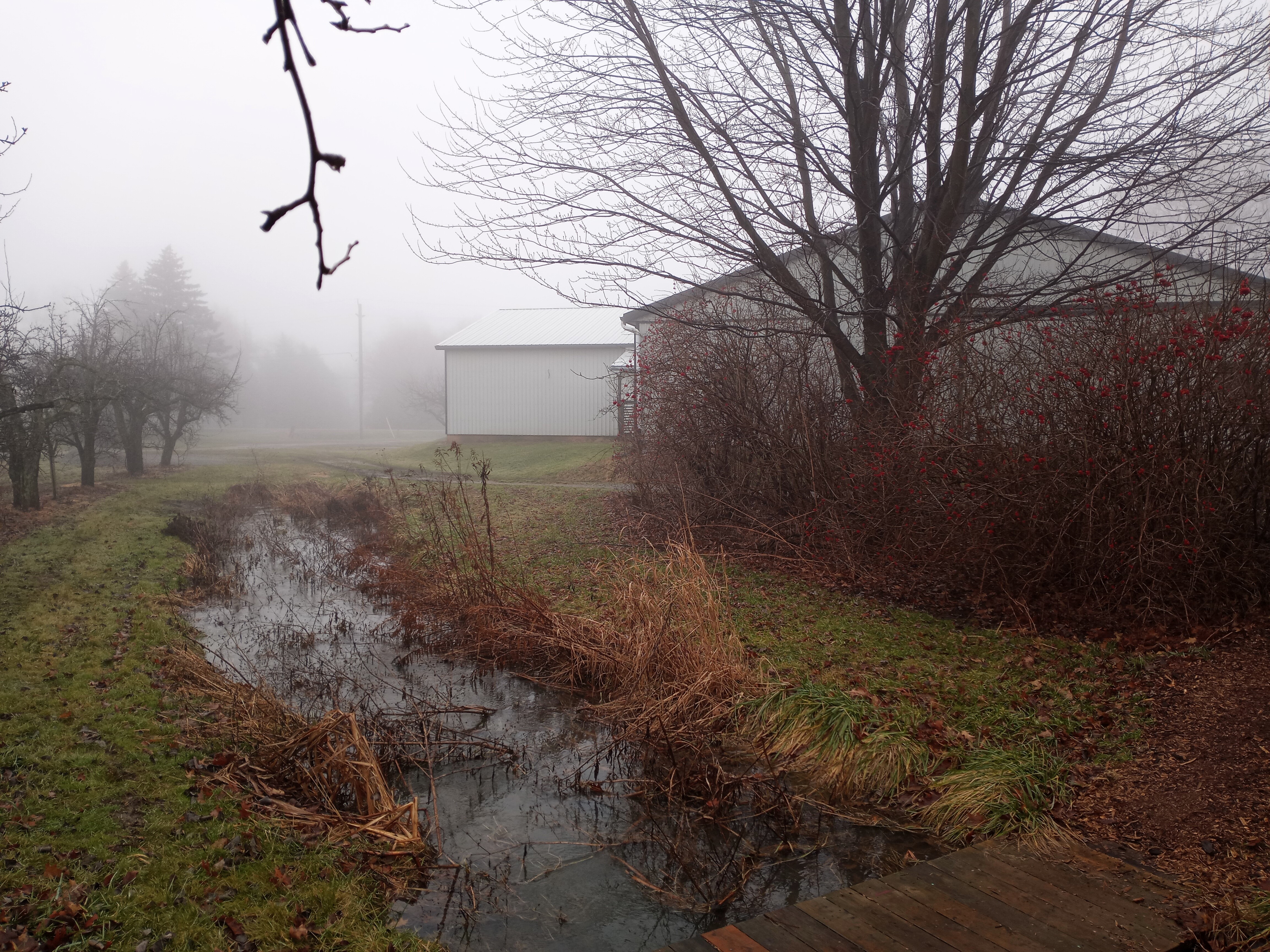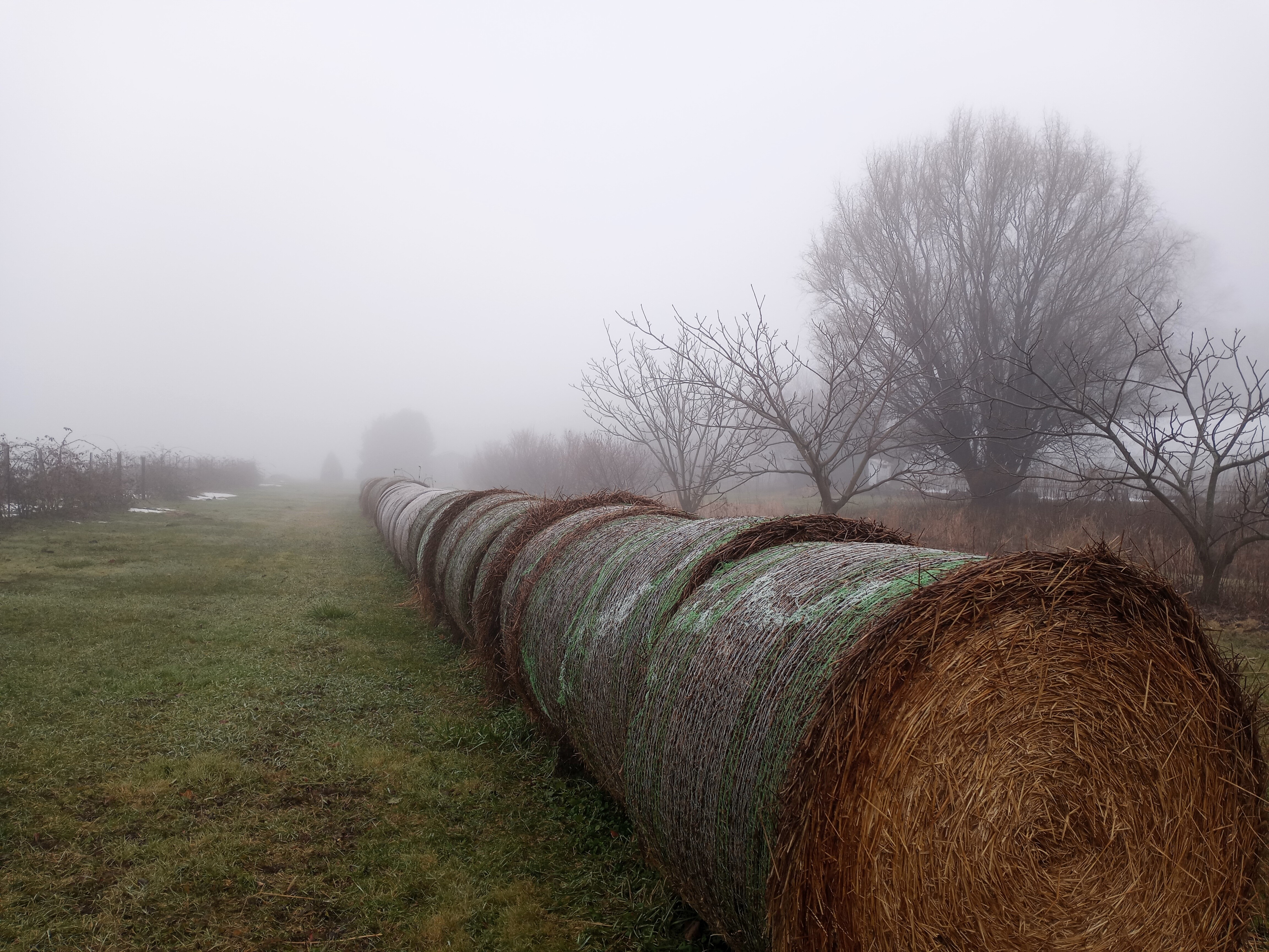 In the little greenhouse there are reminders of last season. Under several added layers of plastic I kept some hanging baskets and some pots of herbs, for early spring cuttings.