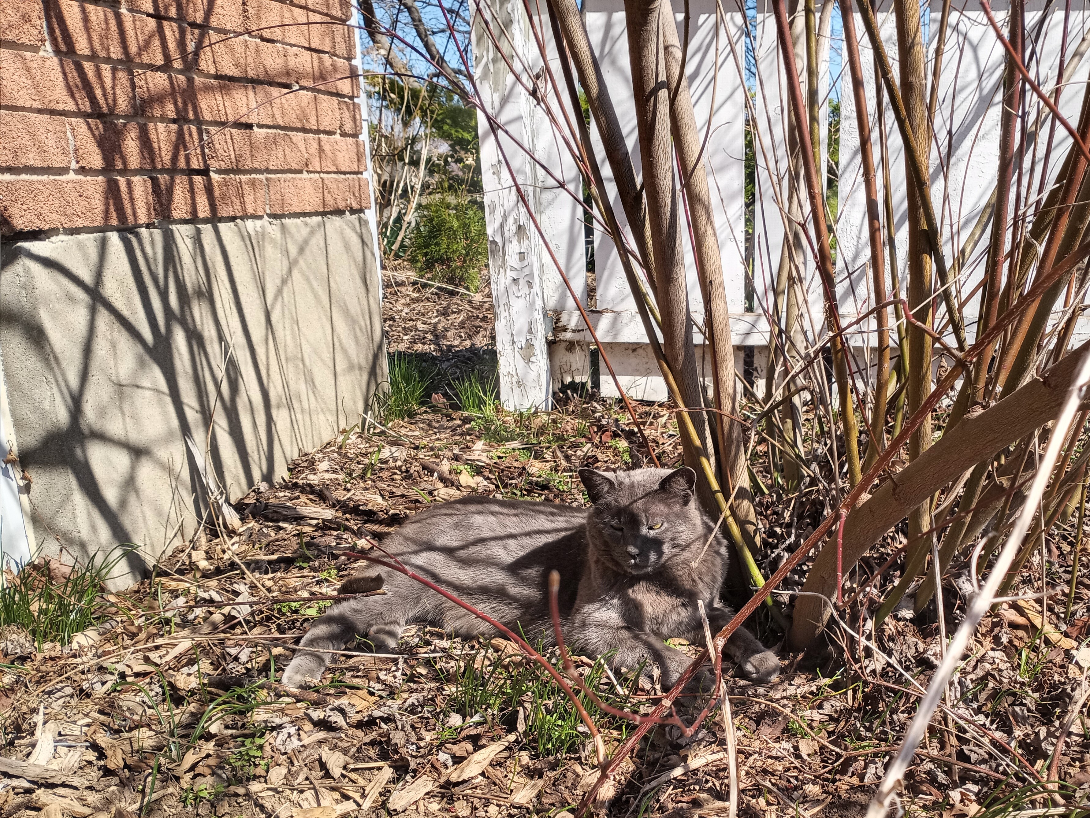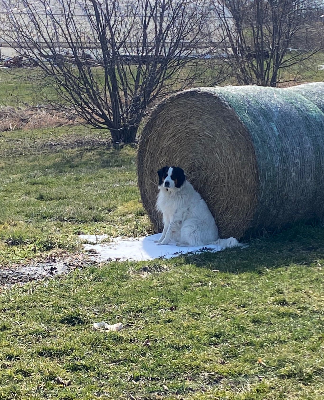 Sage isn’t quite willing to let go of winter – she found the last bit of snow to relax in.