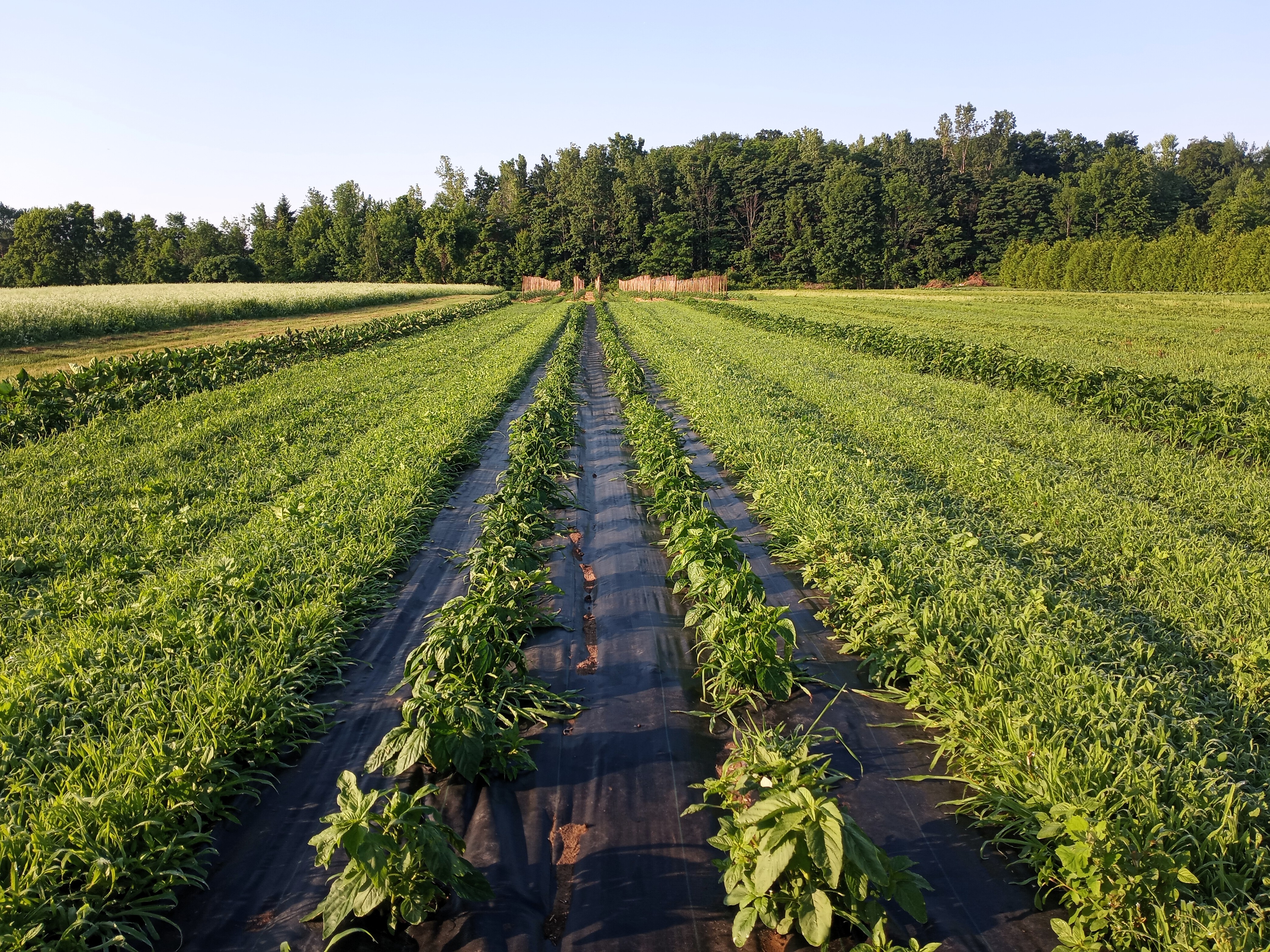 - Other beds (such as beans & sunflowers) will be mowed instead of weeded. This gives quick results and is actually better for the health of the soil. The crops are not affected as long as we mow regularly.