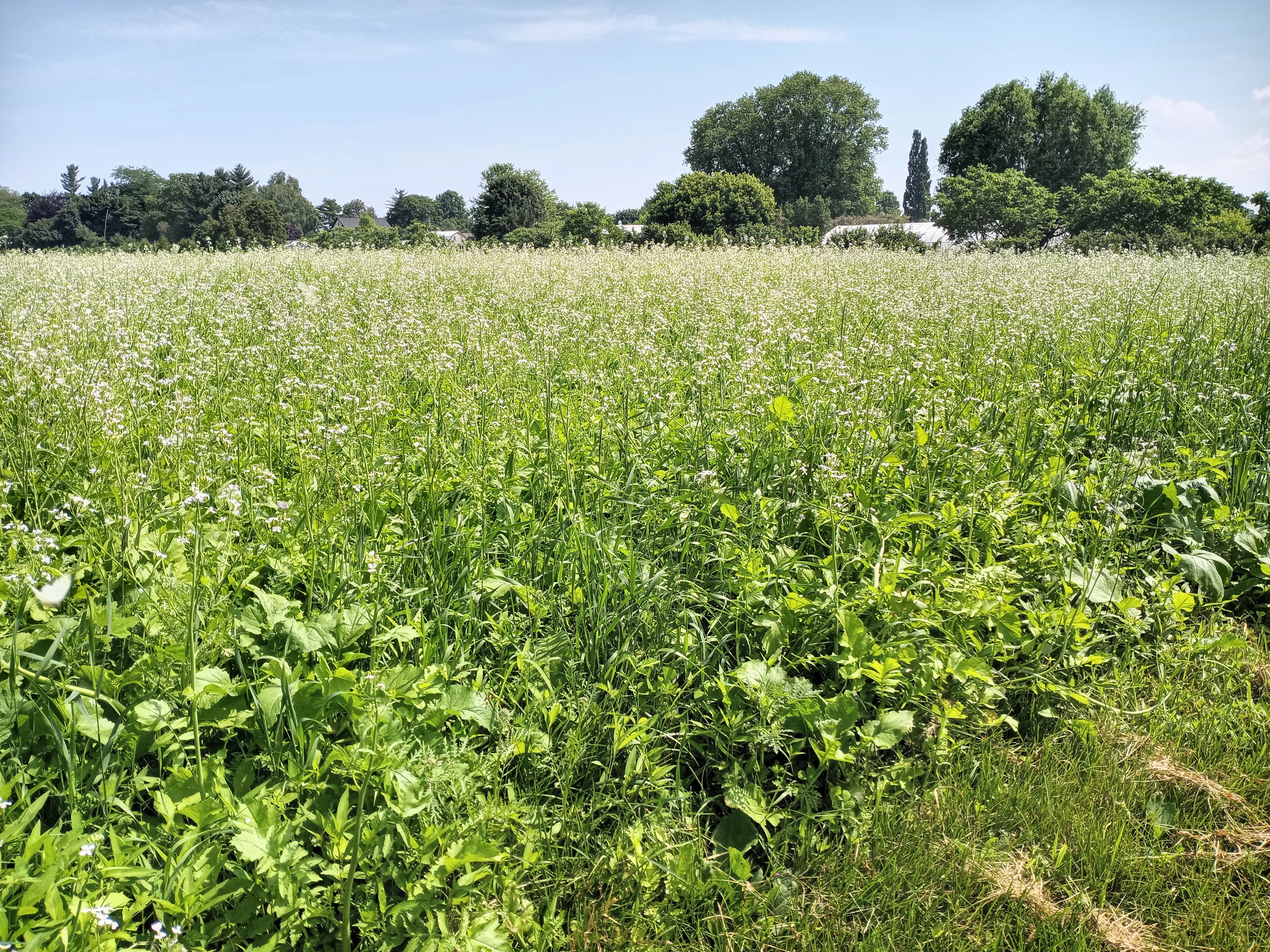 A combination of circumstances gave the weeds an unfair advantage over us – and they took over! Firstly, we have been short-handed. Until now there have only been 2 of us in the fields most days, which is not enough to maintain control. But with school out for the summer, our 3 students are back and the weeds will soon meet their match! Secondly, the weather – hot temperatures & periodic rainfall – has been ideal for weed growth.
