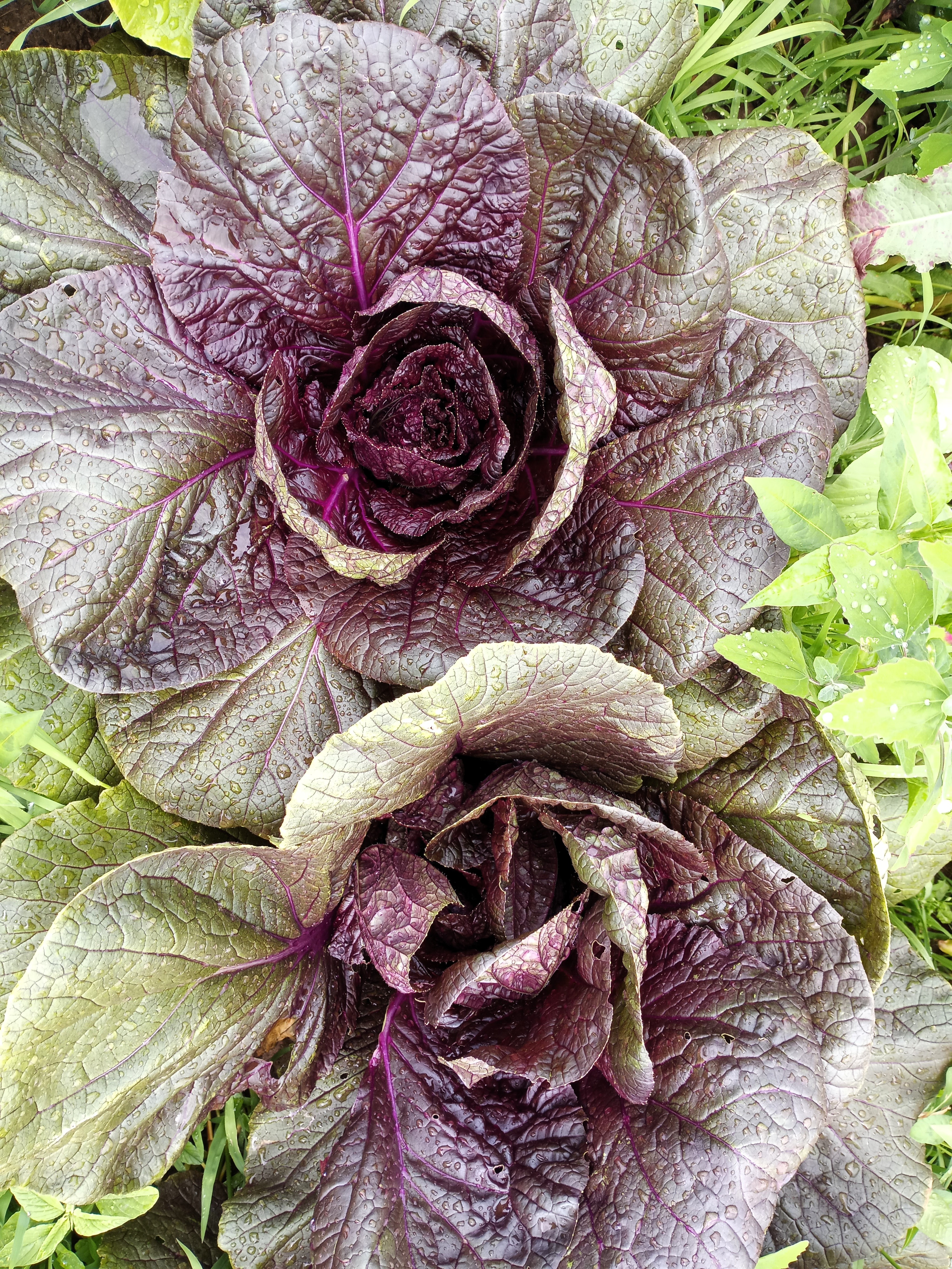 - Chinese or napa cabbage has a mild, slightly sweet flavor and a crisp, crunchy texture. The oblong heads have crinkly, pale green leaves and the inner leaves are a light yellow/white colour. Chinese cabbage is versatile and can be eaten raw in salads, slaws, and wraps, or cooked in soups, stir-fries, and stews. We are also growing a beautiful, dark purple variety called Merlot.