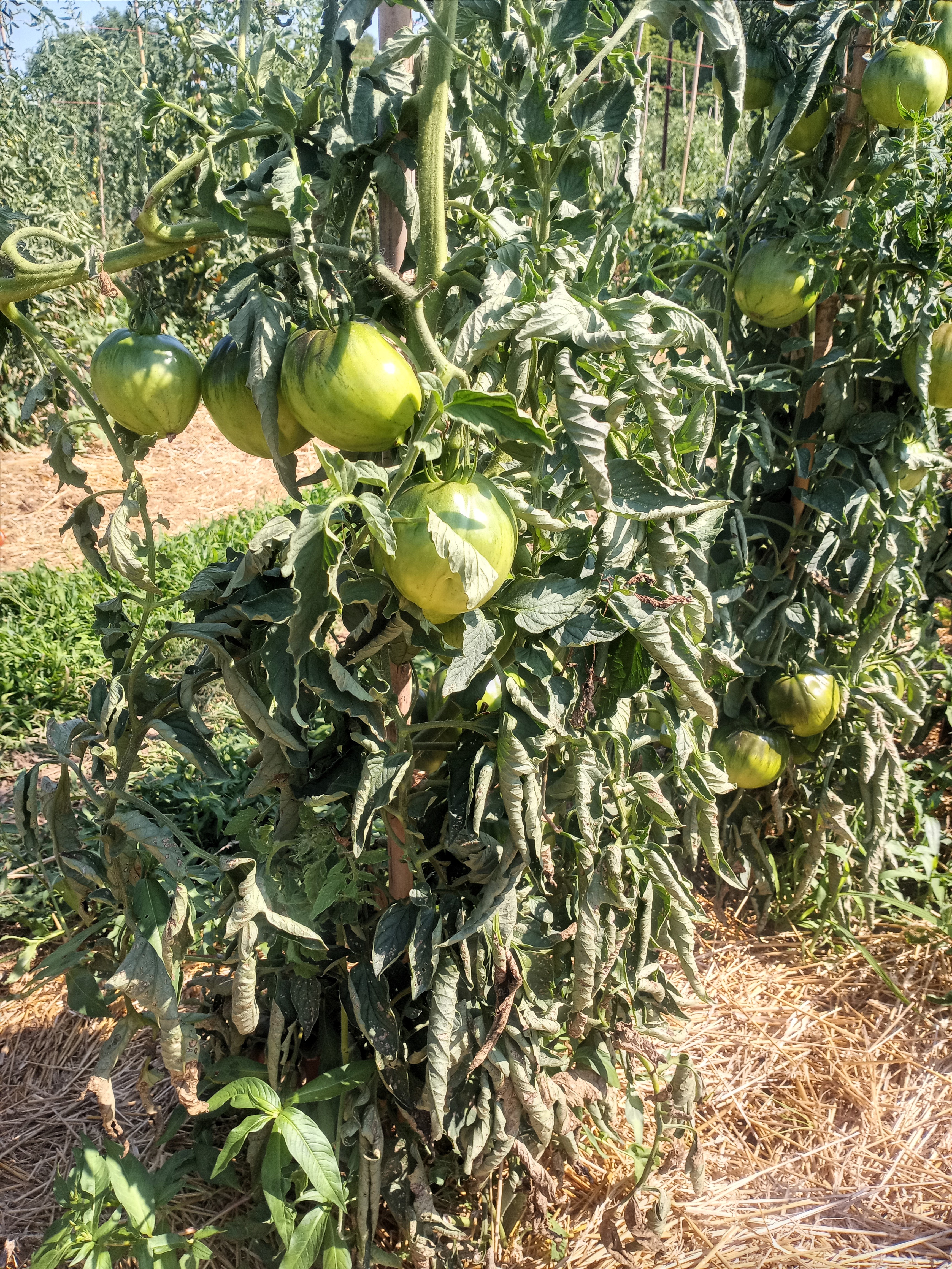 Vegetable plants are feeling the heat & humidity the same as us these days. They’re thirsty, tired & wilting. The entire ripening process slows down as they use their energy to survive rather than ripening the crop. Blossoms drop instead of pollinating and setting fruit. Diseases also show up when it’s so hot. When conditions improve – temperatures moderate & we receive some rain – the plants should perk up and vegetable quantities will increase.