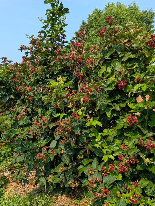 - The 1st taste of blackberries was a surprise in the box last week. But now you can expect blackberries for the next few weeks at least. For those not familiar with blackberries, they are a bit sweet & a bit tart. If they aren’t quite ripe they can be sour. Too ripe and they are soft & mushy – but incredibly sweet. We try to pick them as ripe as possible but still firm. Unlike raspberries, blackberries are not hollow but have a soft edible centre core. The only way to eat a blackberry is to pop the whole thing in your mouth. Try to take a small bite and you will be covered in dark, staining juice. While best eaten fresh, blackberries also make great jam, juice, sauce & ice cream. Please note that we do use pesticides on our blackberries, for the spotted wing drosophila. This invasive vinegar fly has the potential to cause extensive damage to many fruit crops, especially soft and dark coloured fruit – like blackberries. It is found throughout much of southern Ontario and most of the fruit-growing areas of North America, and has become a chronic pest in berry and tender fruit crops. There are cultural practices that we use to help reduce the insect populations, but the most effective control is chemical. So we spray regularly to protect our blackberries & keep them free of worms.