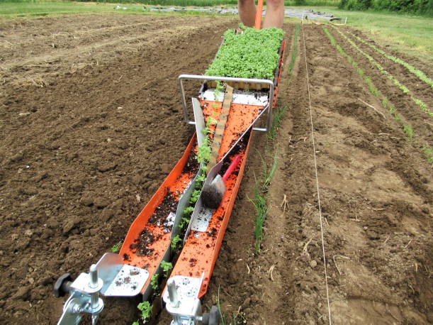 Each week I then transplant vegetable seedlings out into the fields. I use our paperpot transplanter which makes a slow, backbreaking job extremely fast & easy. See https://thiessenfarms.com/2018/06/25/csa-2018-week-5 for a description & pictures of this amazing piece of equipment.