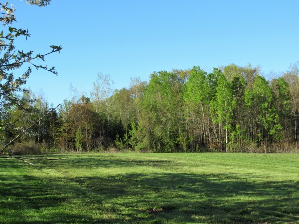 Our farm is outlined in red. Surrounding us are strawberry fields, then a hazelnut grove, and fruit (mostly peach) orchards. Lake Ontario is just under 2 km north of our farm. The CN railroad tracks border the south side.