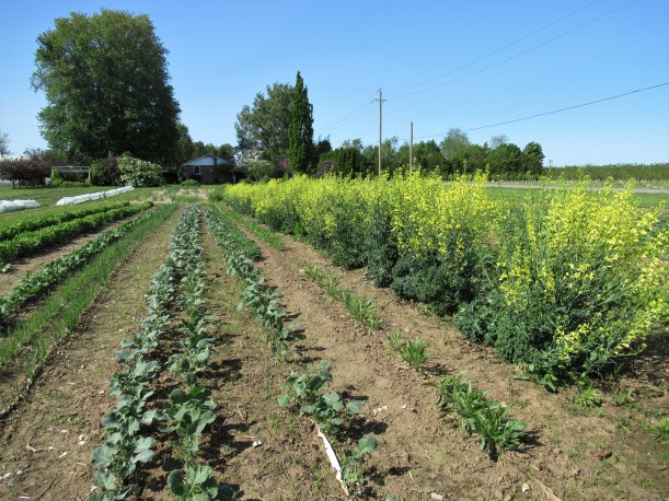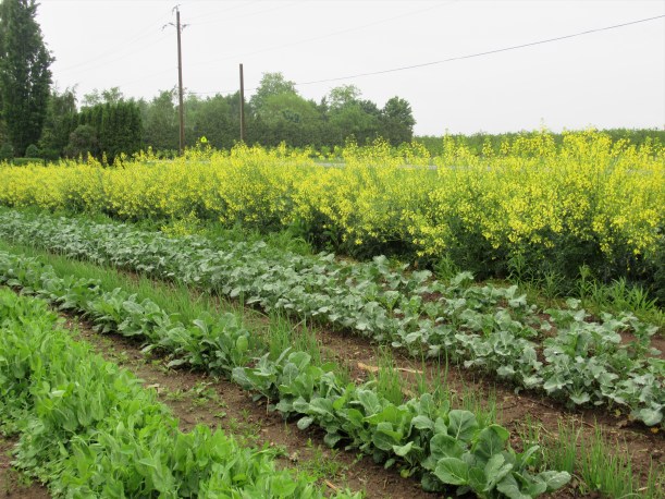 This cover crop is lush & green from all the rain. We’ve had to mow it down several times. Now it’s dry enough that we can work it in and prepare the soil for planting vegetables here, later in the season.