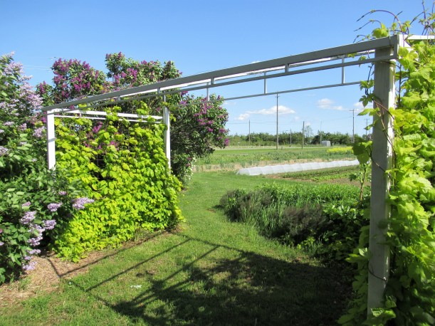 Our other chaotic herb garden. But because it’s hidden behind the lilacs & golden hop trellis, it doesn’t stand out. You might say that this bed was made according to the article – we just planted a bunch of different herbs and let them grow. The angelica and bronze fennel were the bullies and outgrew everything else (except for the weeds again).