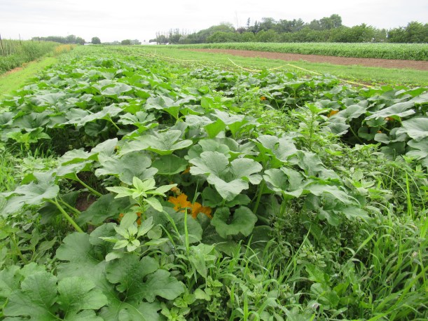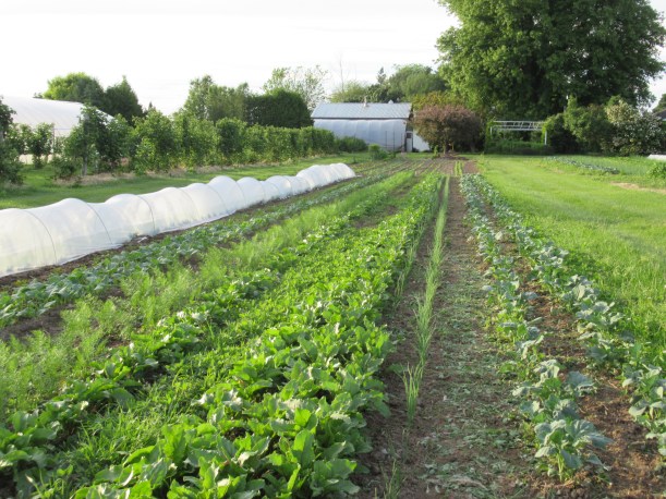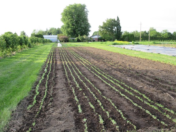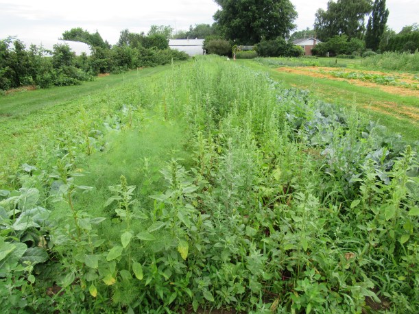So far we have been able to keep the weeds under control, but that carpet of green springing up between the rows is really scary!