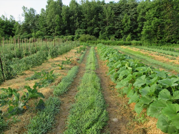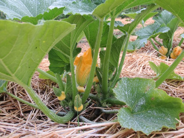 The new zucchini patch is mulched, and growing well thanks to the 1″ of rain we received last week.