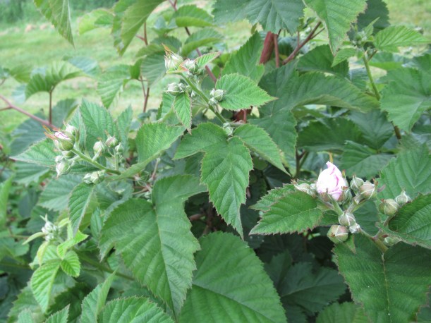The blackberries are almost finished blooming and little berries are already forming. In about a month they will be ripe!
