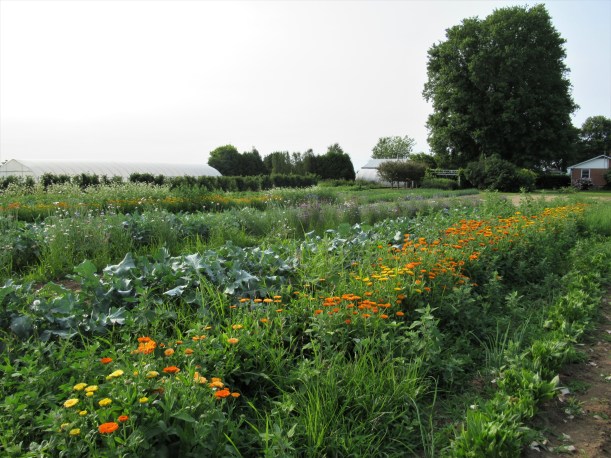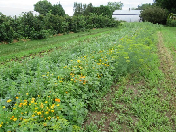 They look amazing – in the field, in the basket, and on the table at market. While we don’t sell a lot of them, they do attract a lot of attention & draw people to our table. And equally important, the bees & bugs in the fields love them. The flowers are always teeming with insects!
