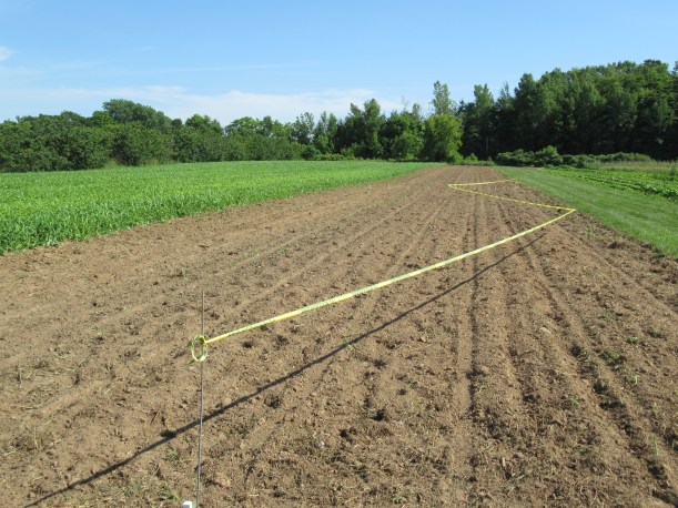 This field by the garlic has been difficult to get ready to plant. We would work it up, but the cover crop & weeds would regrow rather than dry up & die. But finally it’s ready!