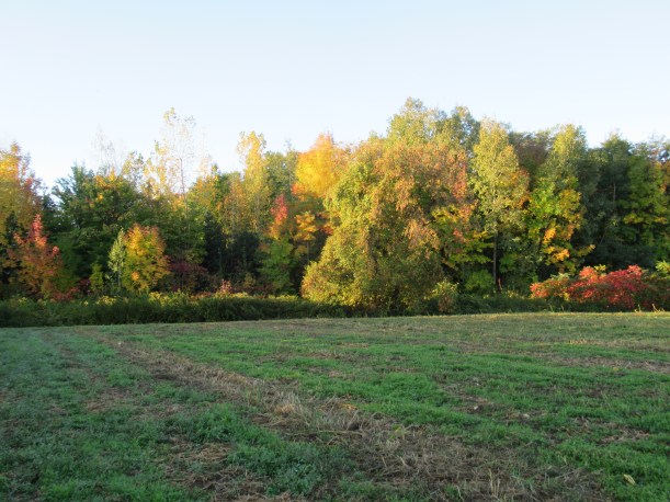 Most of the farm is now empty. The cover crop is coming up nicely. In the background trees are turning colour and looking beautiful.