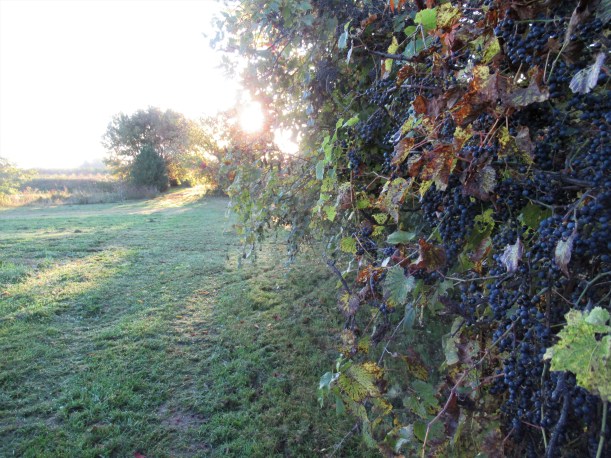 The wild grapes along the train tracks have ripened and look beautiful too. (Yes, I eat them and yes, they’re sour!)