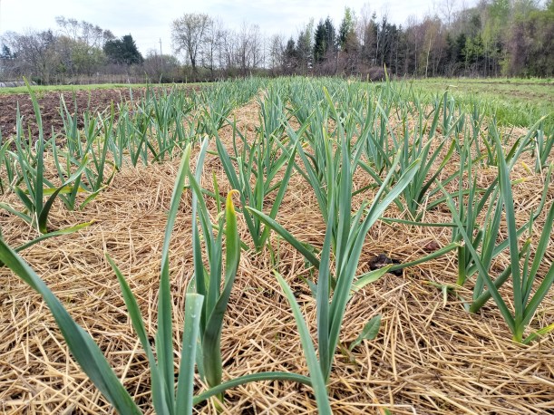 - First it was green garlic. Now there are garlic scapes. Scapes grow out of the top of the garlic plant and curl around in a loose coil. If we left them they would eventually flower and go to seed. But we prefer that the plant uses its energy to form large garlic bulbs underground instead, so we remove the scapes. They are delicious! Use them wherever garlic bulbs are used – raw or cooked. Their flavour is a bit milder. They are also great on the BBQ. Coat the whole garlic scape with olive oil, and sprinkle with salt & pepper. Grill for a few minutes on each side until well charred & tender. Garlic scape pesto is also a good way to use the scapes. Here’s a link to an interesting article, “12 ways to add garlic scapes to your spring cooking routine”. https://www.bonappetit.com/test-kitchen/ingredients/article/garlic-scapes