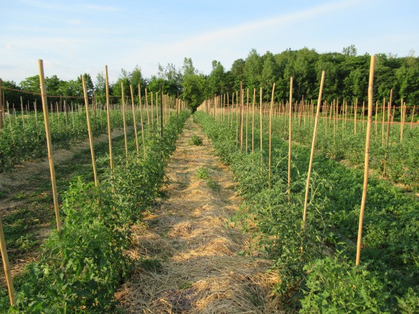 Meanwhile, the weeds are not waiting. They are loving all the moisture & now the warmth and growing like gangbusters. We have finished mulching the peppers & eggplant with straw – out attempt to beat the weeds.