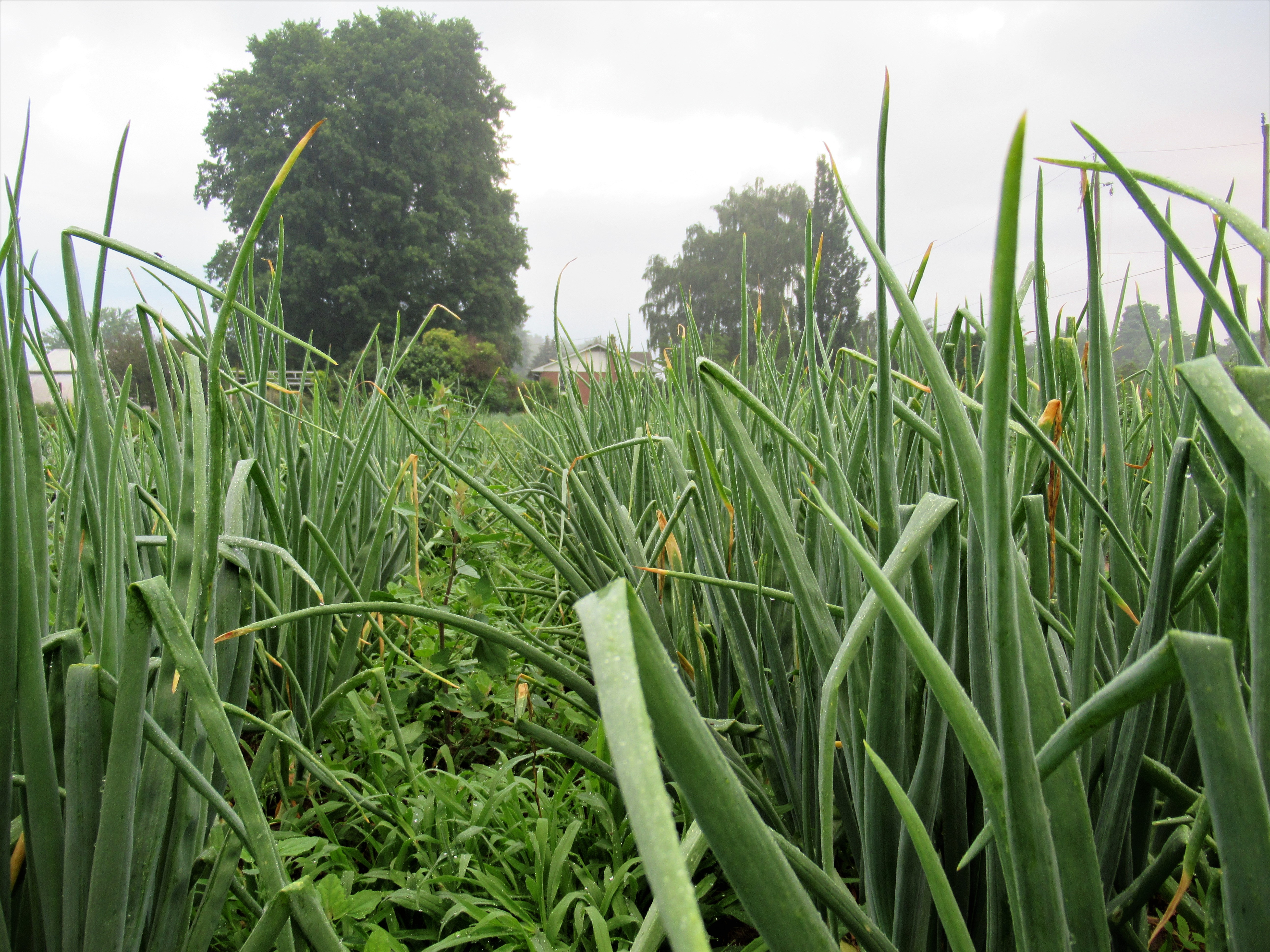 - The first planting of green beans (we’ve seeded 3 times so far) is ready. It is a reduced harvest – too much competition from weeds & too wet – but things should improve this week. Enjoy!