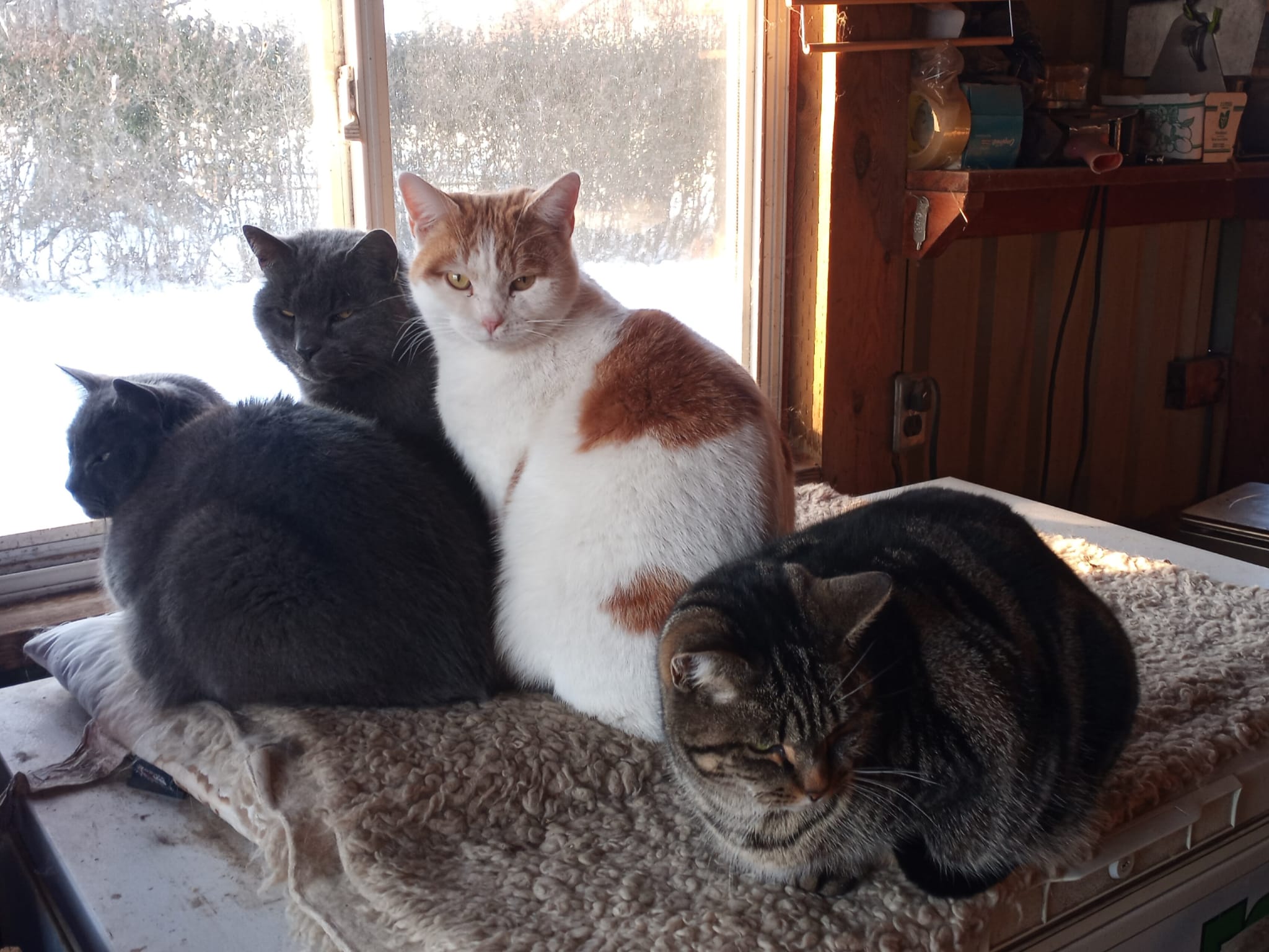 This is about as far outdoors as the cats will venture on these cold days – and only if the sun is shining!