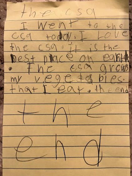 And check out this note we received last fall from one of our younger CSA members …