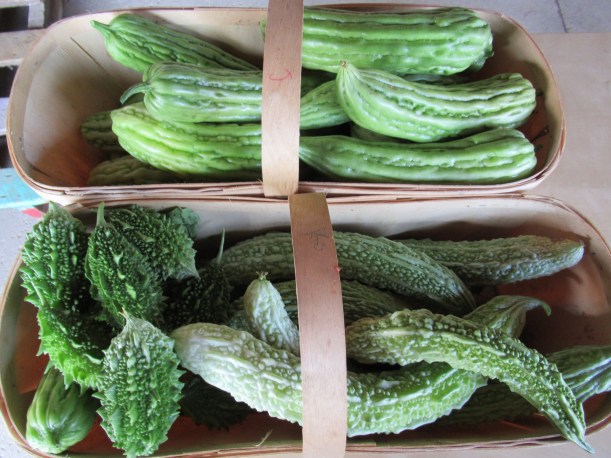 This week we harvested the last of the bitter melons, kohlrabi, edamame and probably eggplant too. There remain a few beets, salad turnips, and winter radishes.