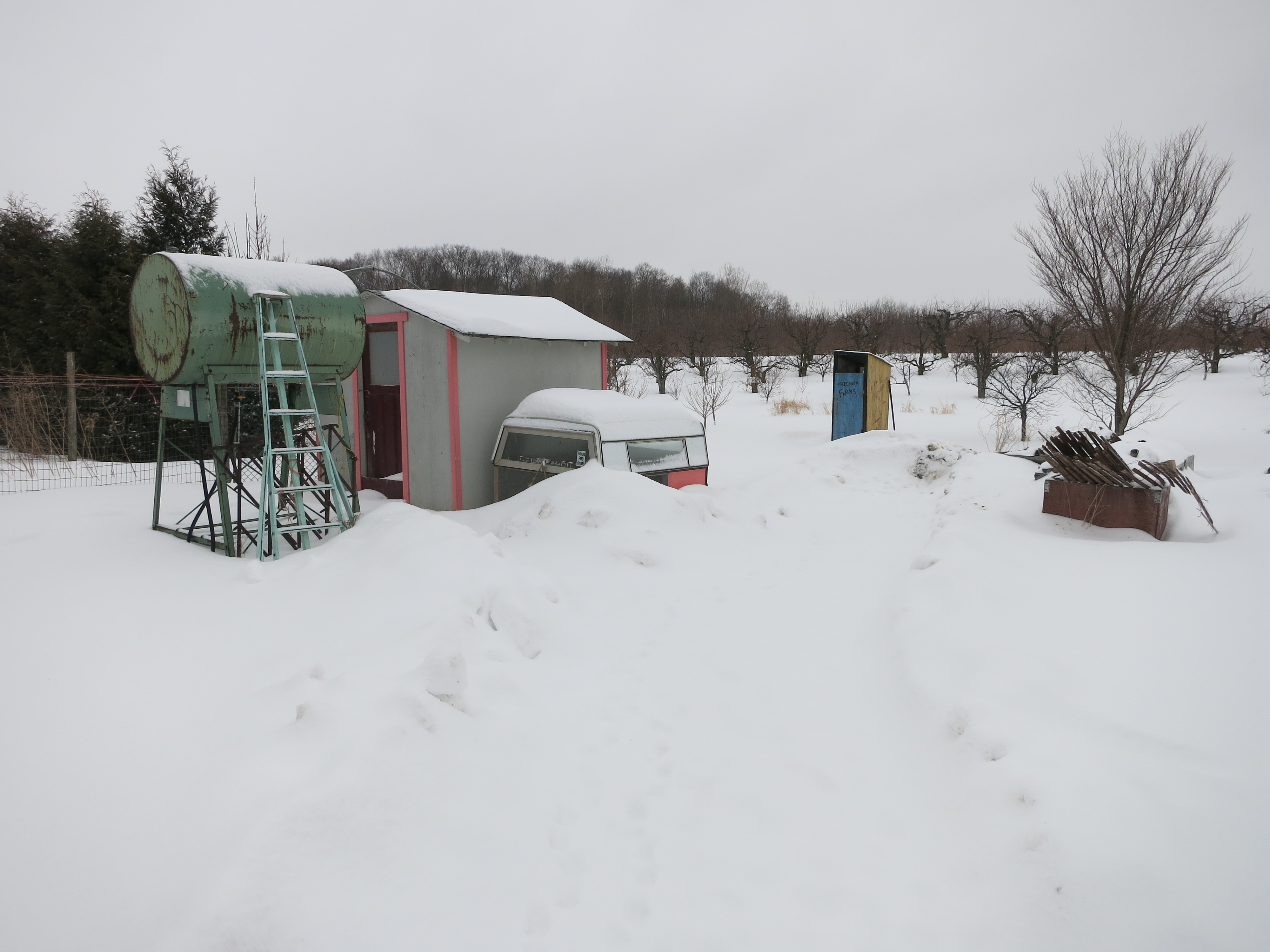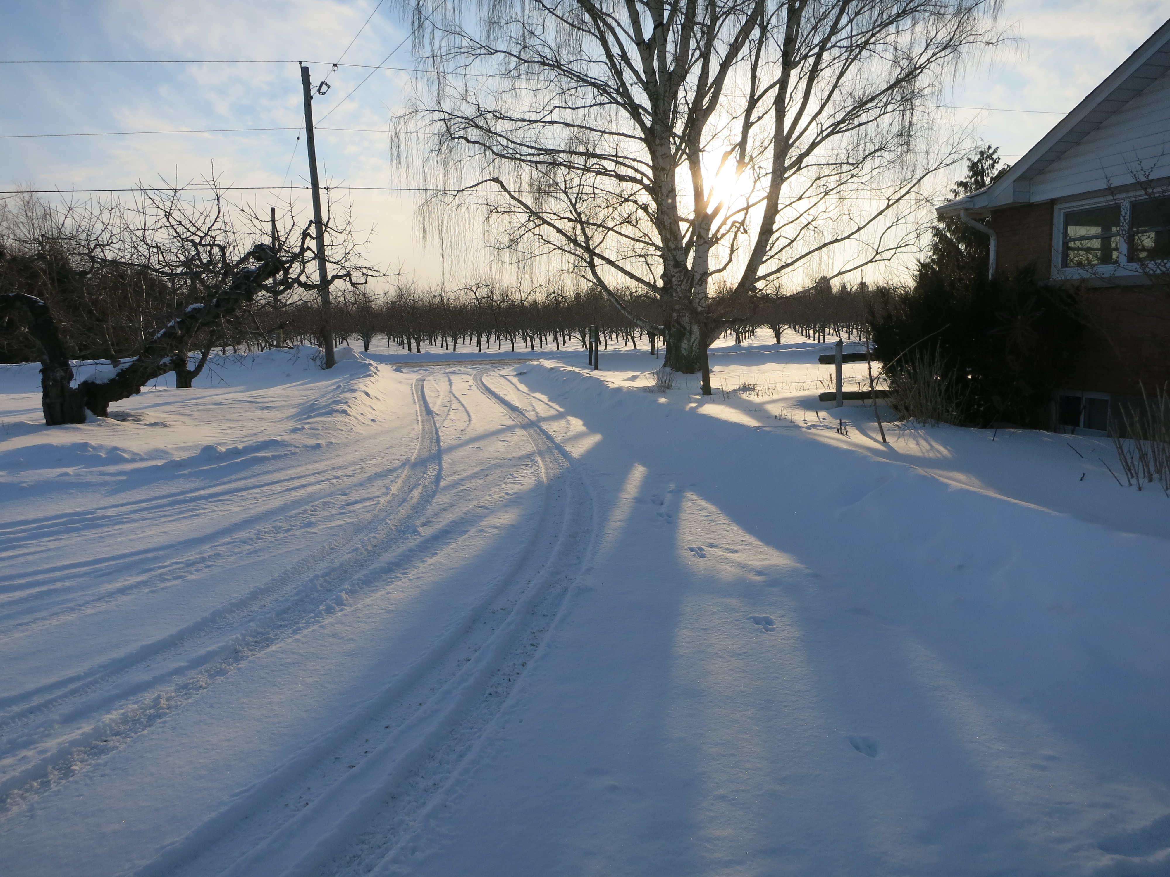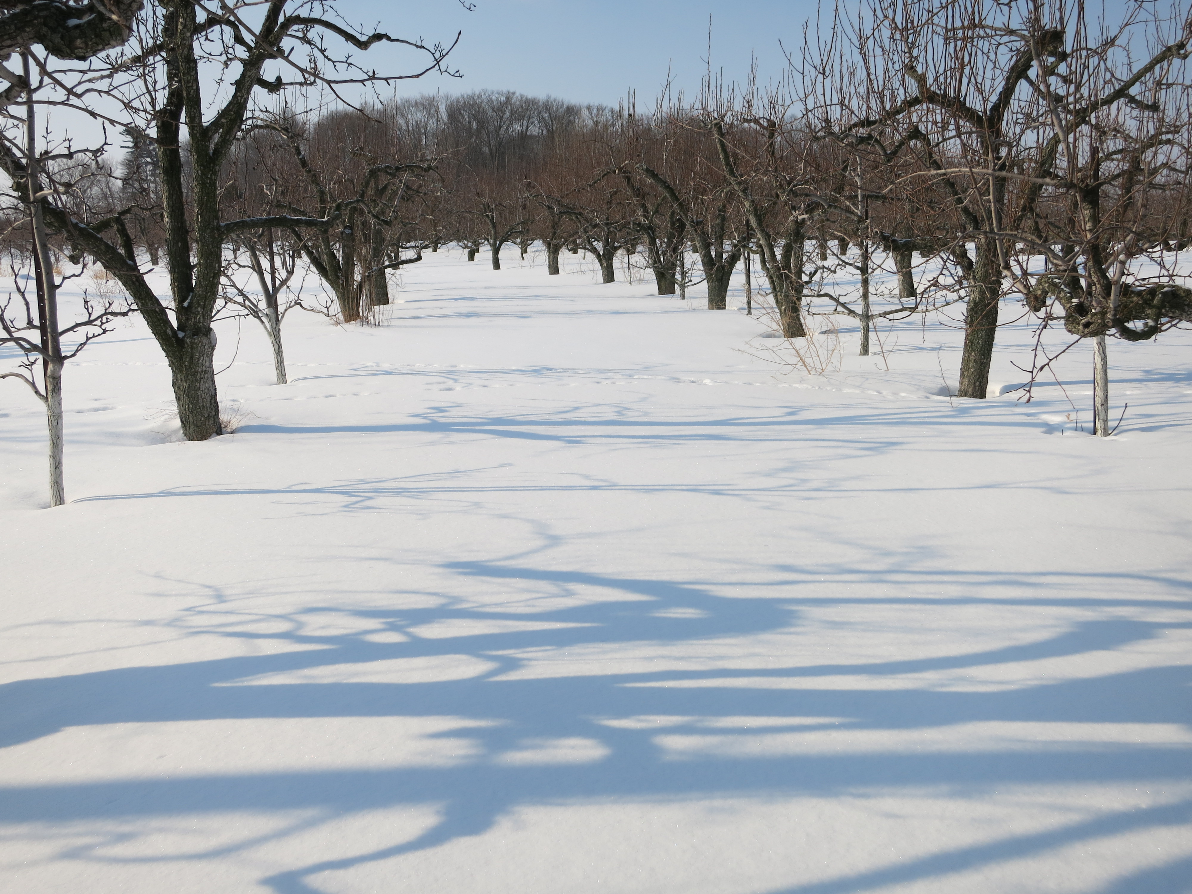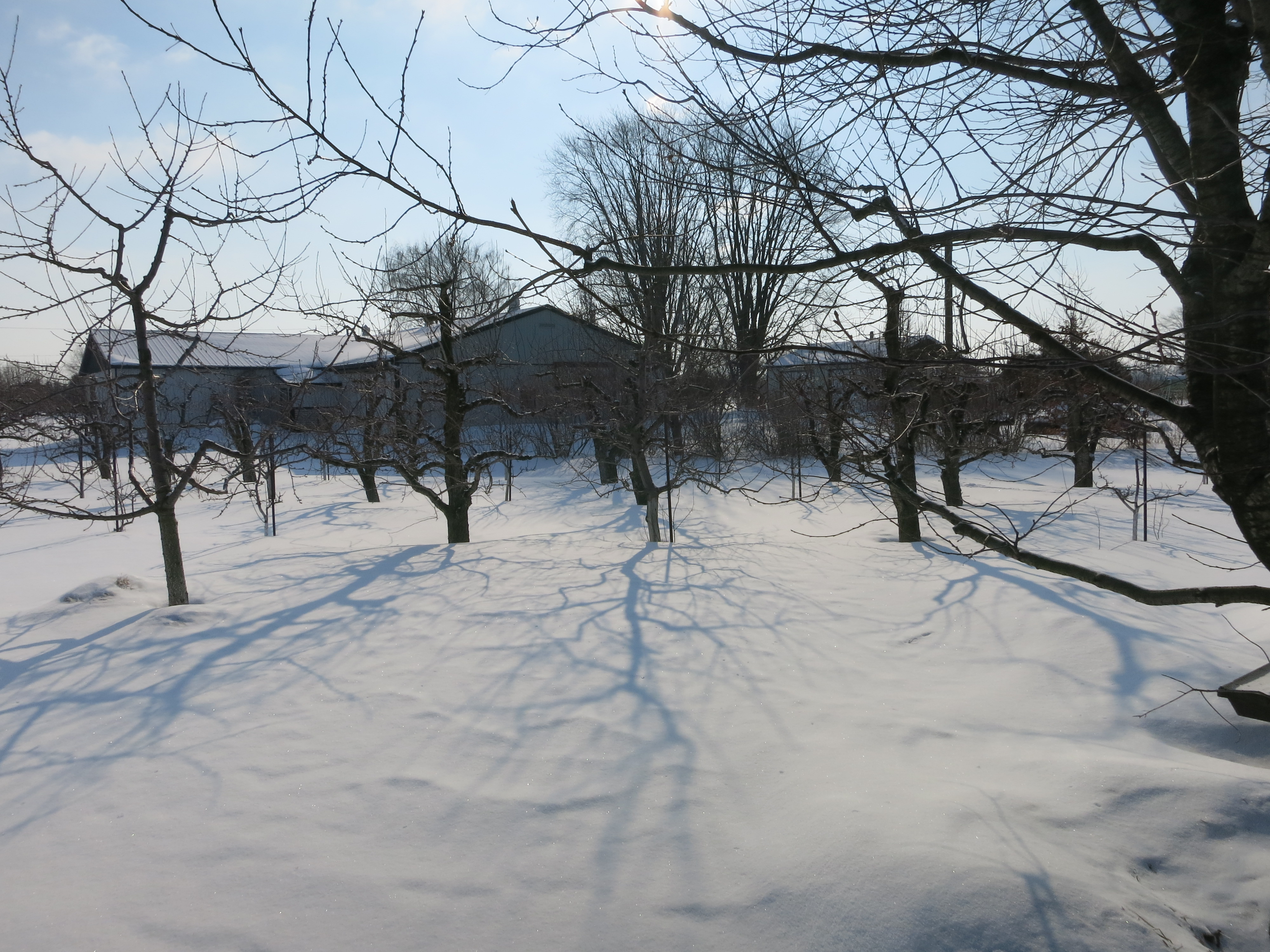 Along the north side of the railway tracks, there is still a crust of the white stuff, especially where snowmobiles roared through the farm all winter.