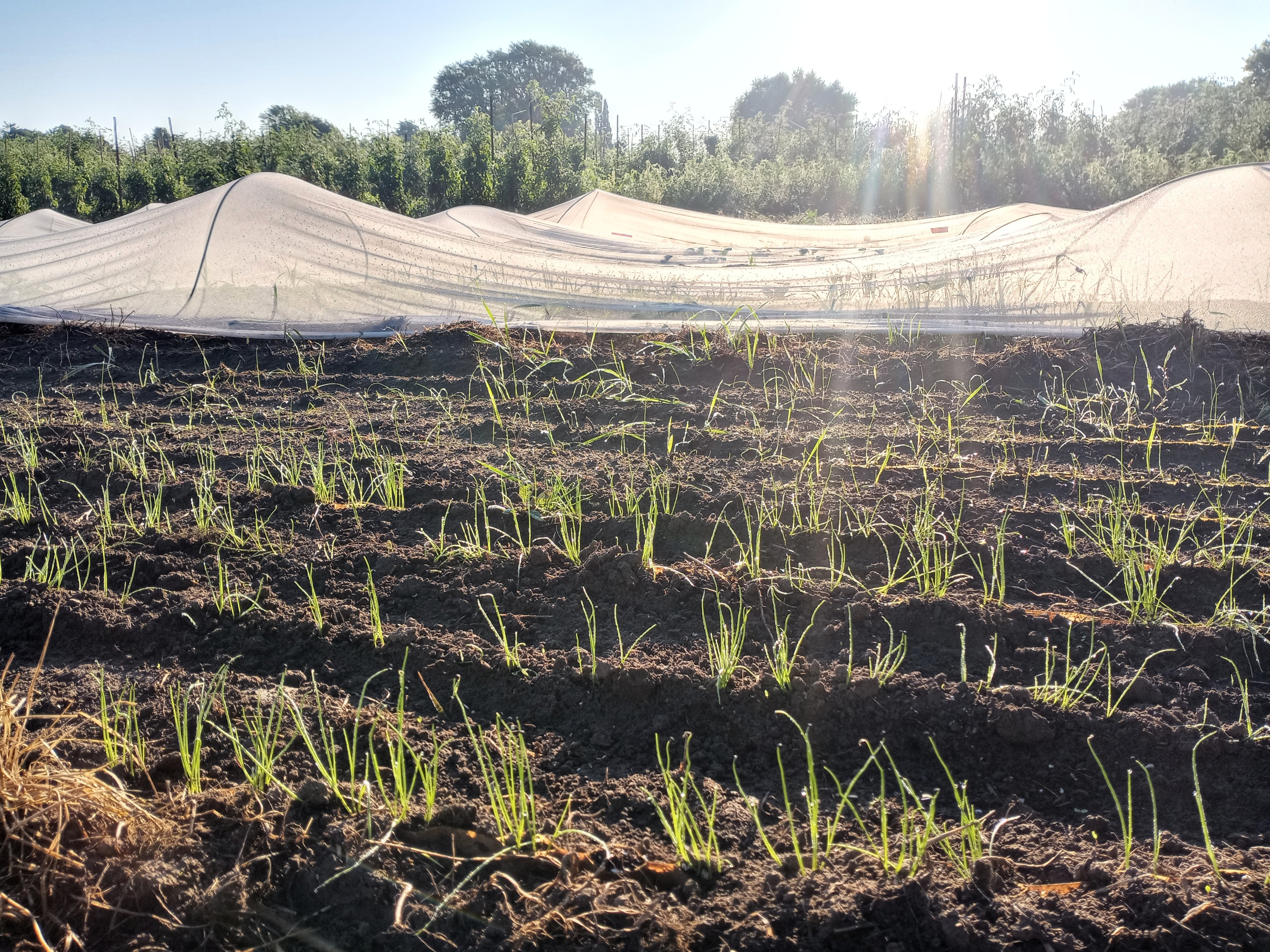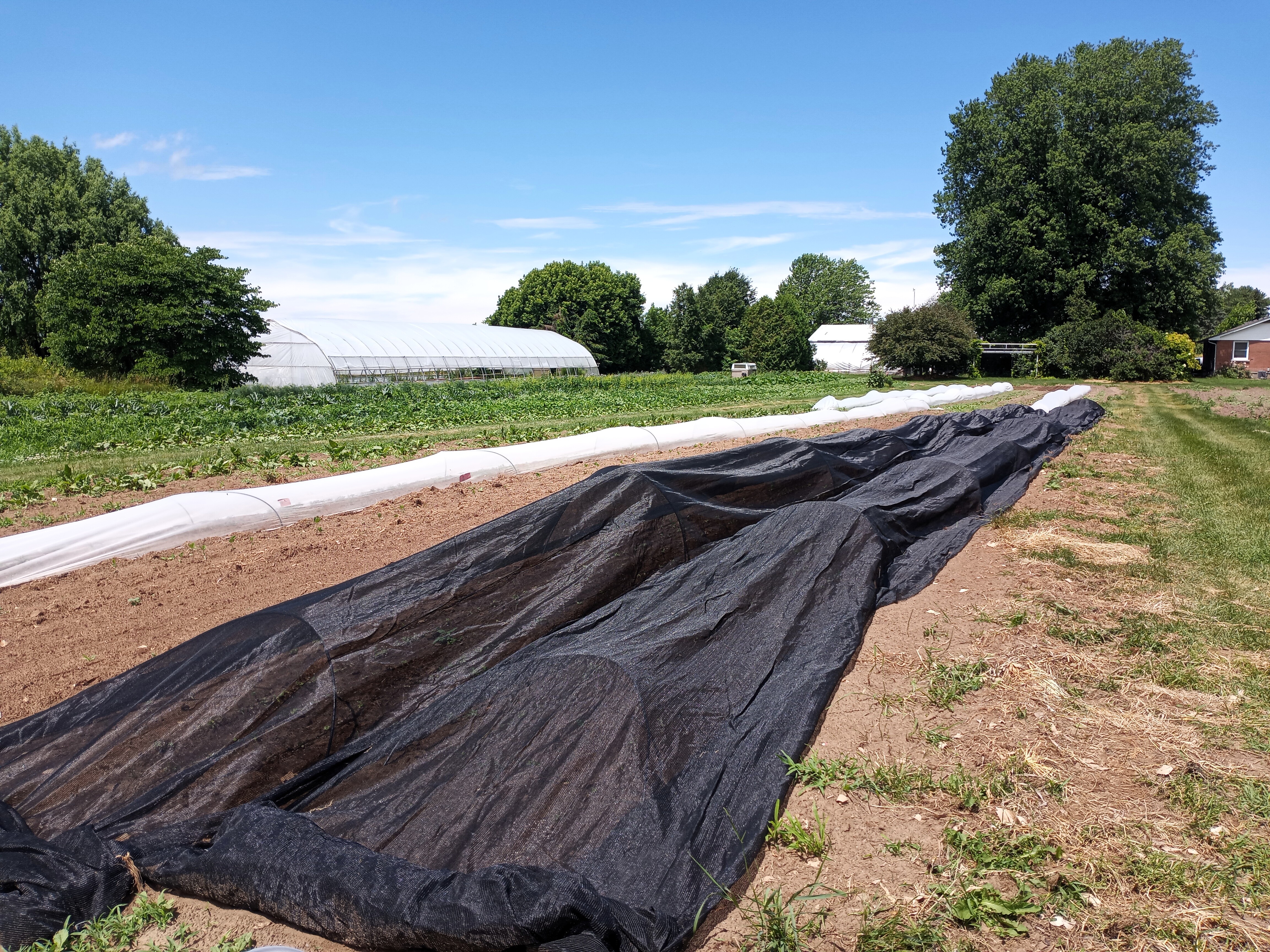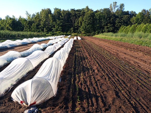 We are covering most crops with the white cover now, especially when they are smaller – as much for protection from the intense sun and heat as for insect protection.