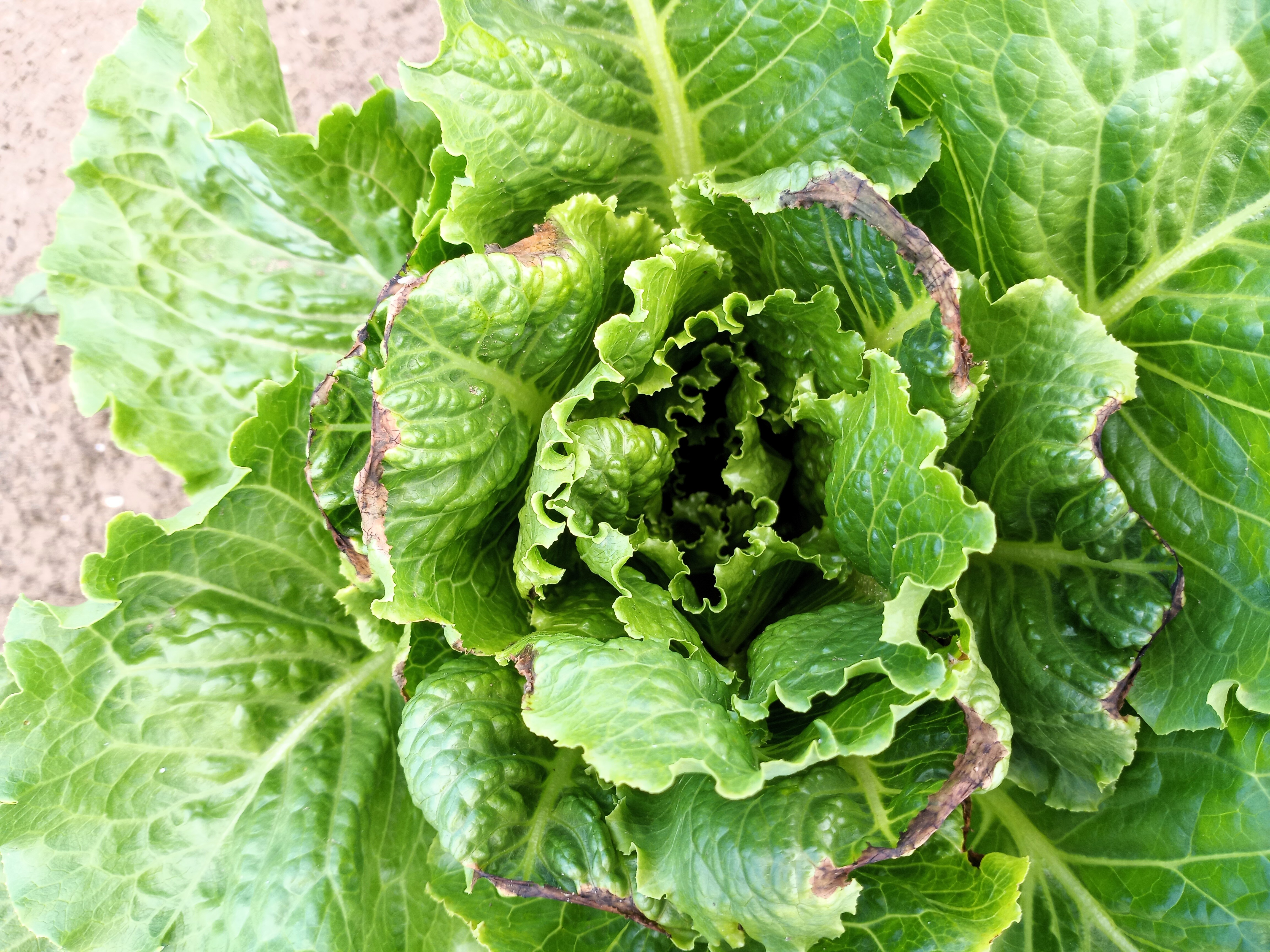 Another variety has heads that look look like this with a crispy burnt edge to some of the outer leaves. This is caused by the extreme heat we have experienced lately and is cosmetic only.
