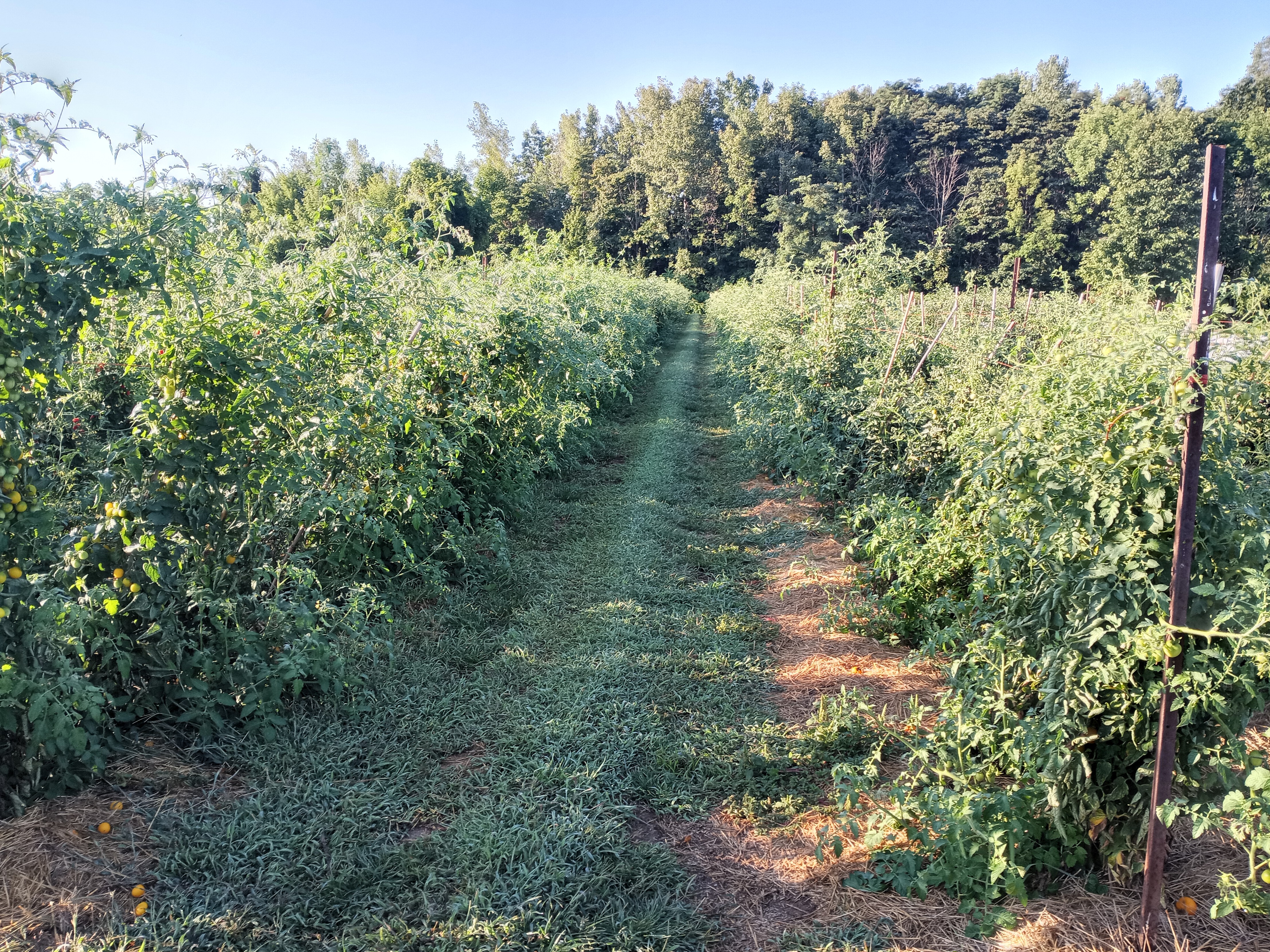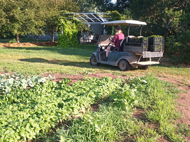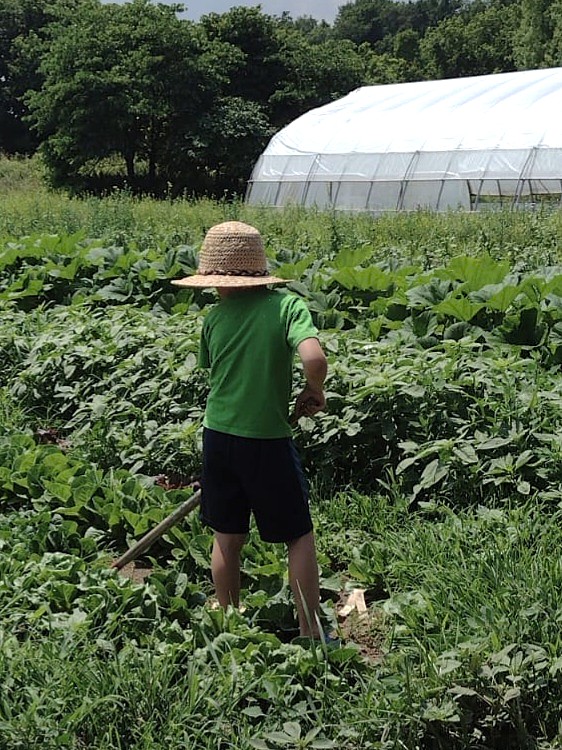 A combination of circumstances gave the weeds an unfair advantage over us – and they took over! Firstly, we have been short-handed. Until now there have only been 2 of us in the fields most days, which is not enough to maintain control. But with school out for the summer, our 3 students are back and the weeds will soon meet their match! Secondly, the weather – hot temperatures & periodic rainfall – has been ideal for weed growth.